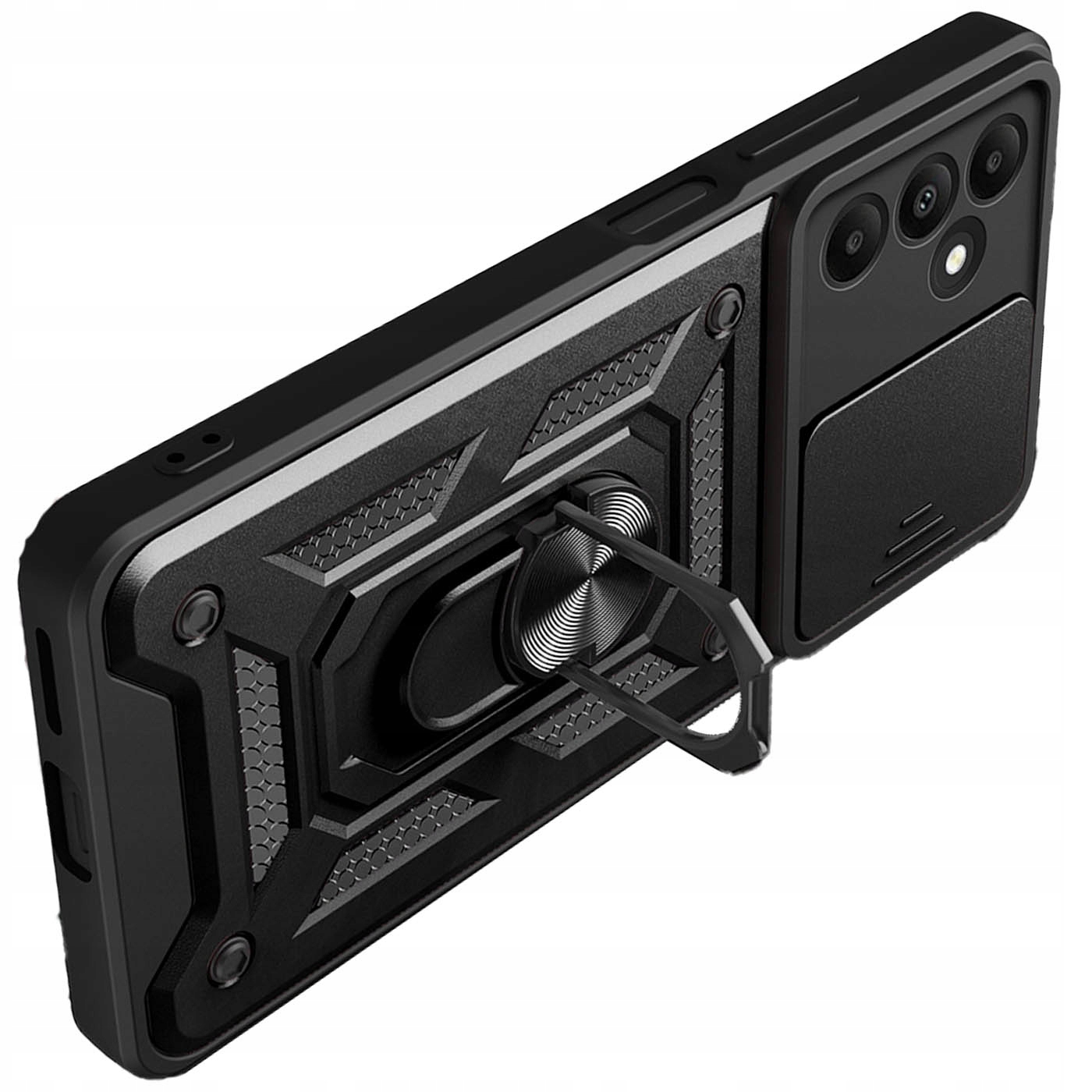 Исключительный внешний вид и защита вашего Samsung Galaxy M34 5G A25 5G идут рука об руку благодаря чехлу Defender Armor Case! Этот прочный чехол не только отлично защищает телефон от повреждений, но и придает ему динамичный, современный характер. Благодаря функциональным решениям, таким как выдвижная крышка камеры и держатель для кольца, ваш телефон всегда готов к любой ситуации.