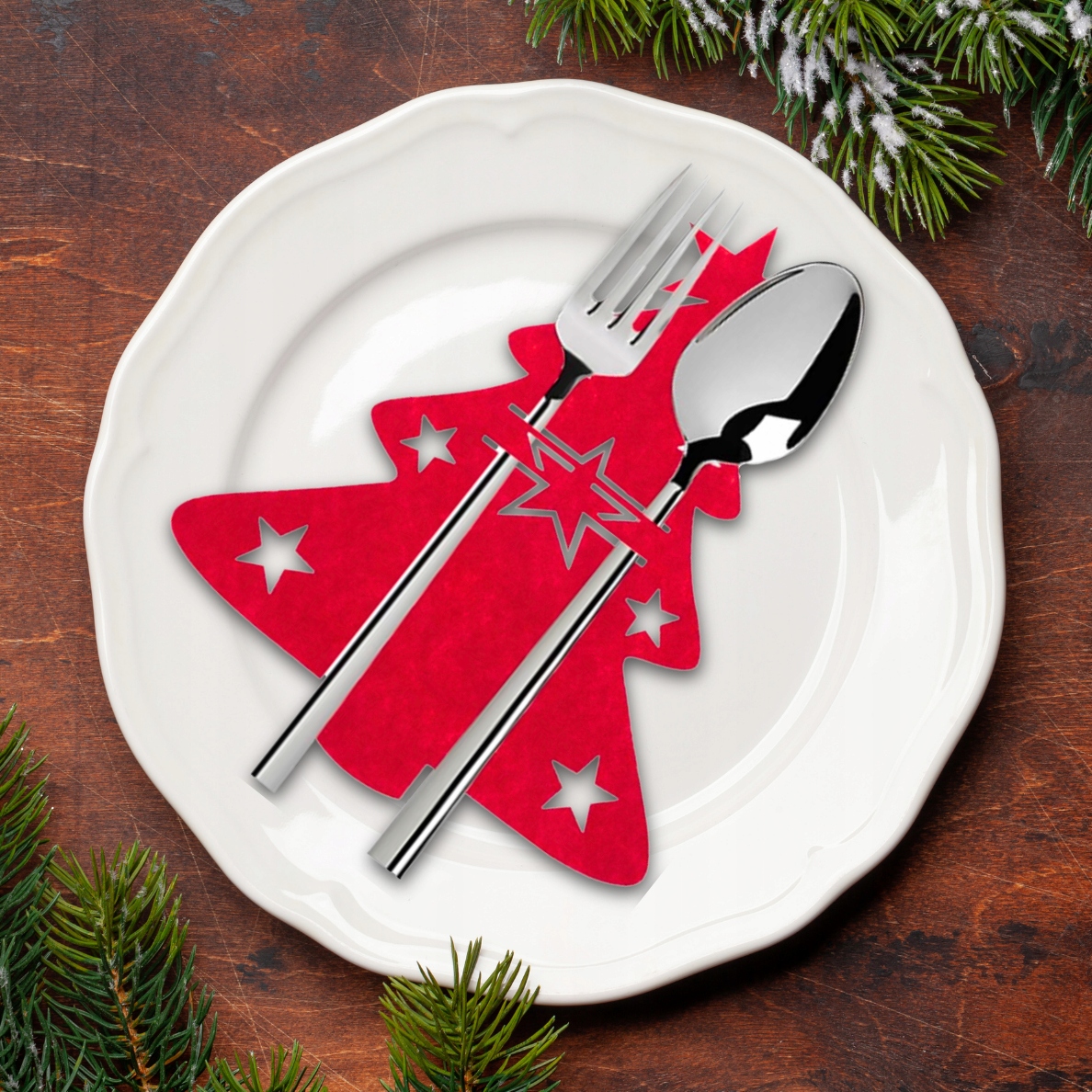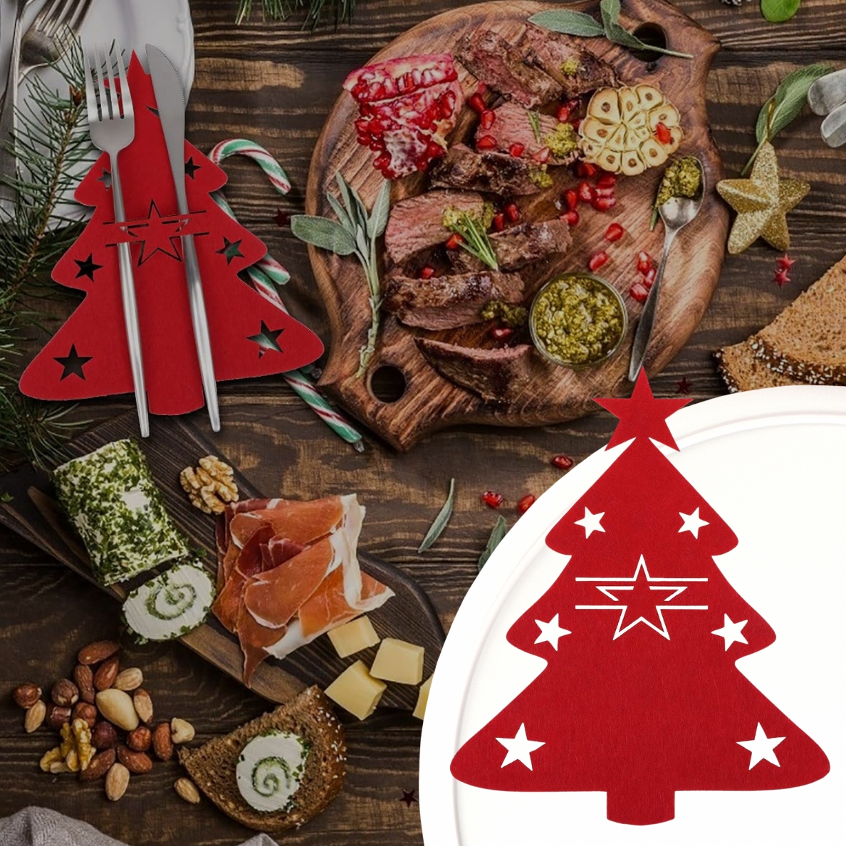 ✅Рождественское украшение: Чехлы для столовых приборов, украшенные мотив рождественской елки. Они станут очаровательным украшением стола во время праздников. Они добавят очарования и рождественской атмосферы каждому блюду.