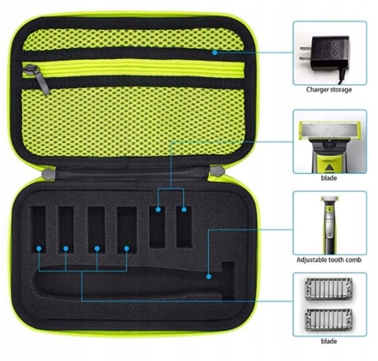 - Имеет карманы для зарядного устройства и лезвий - практично,