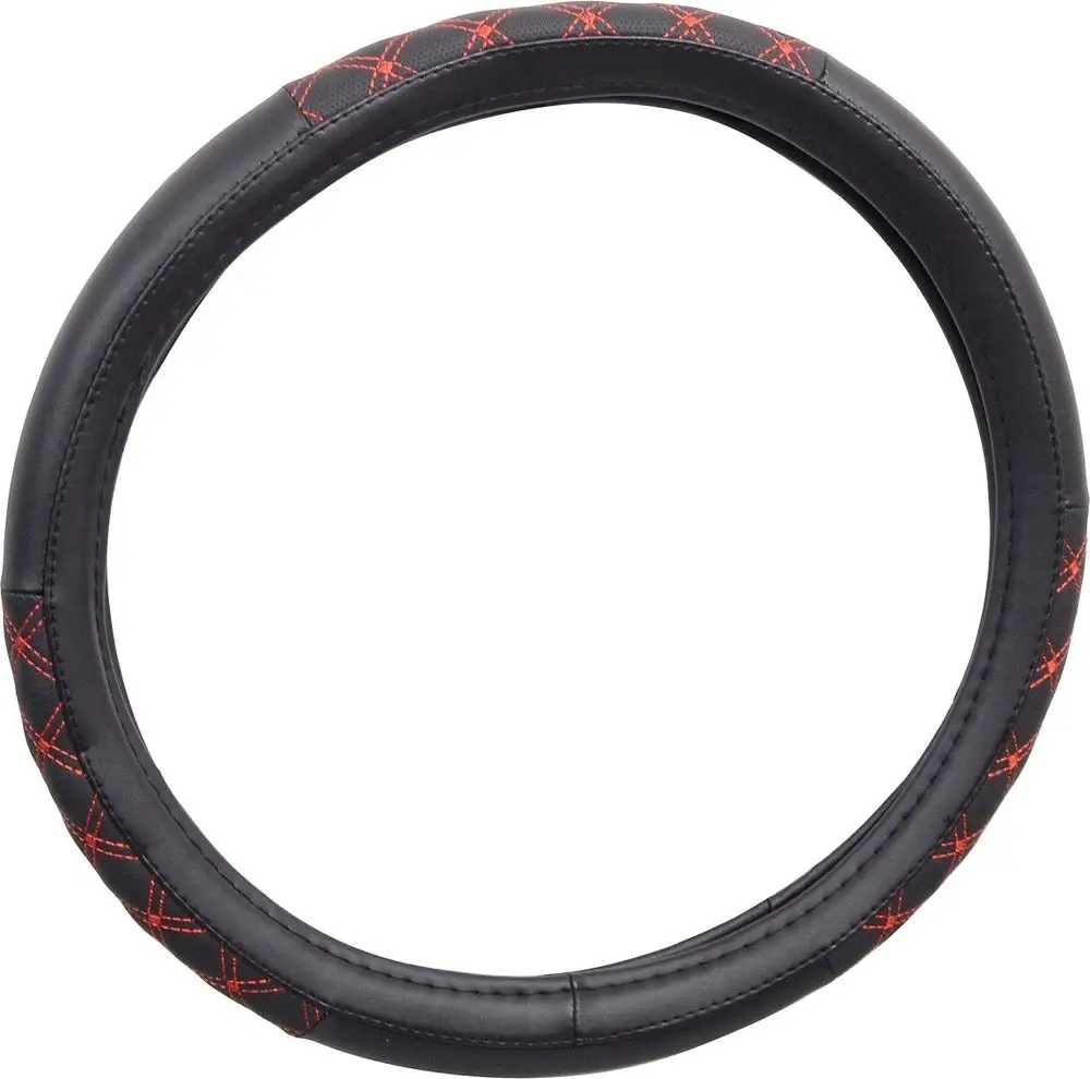 Универсальный чехол идеально прилегает к рулю и эффективно предотвращает соскальзывание рук. Это одна из самых частых причин, по которой водителям нужен чехол на руль. Он не только защищает от износа, но и гасит вибрации и не перегревается под воздействием прямых солнечных лучей. Элегантный дизайн дополнительно подчеркнут узорчатыми красными нитями.