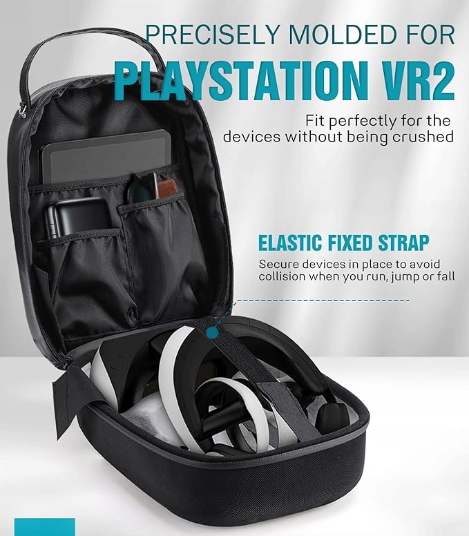 【Точный дизайн для вашей PS VR2】 Этот чехол для PlayStation VR2, открывающийся в соотношении 1:1, полностью использует пространство, не давит на машину и имеет два отдельных отделения, в которых можно разместить вы можете организовать свою гарнитуру, контроллер Sense и другие аксессуары PS VR2. Мягкая подкладка этого чехла для хранения PS VR2 защитит гарнитуру иигровые аксессуары VR от царапин при встряхивании устройства.