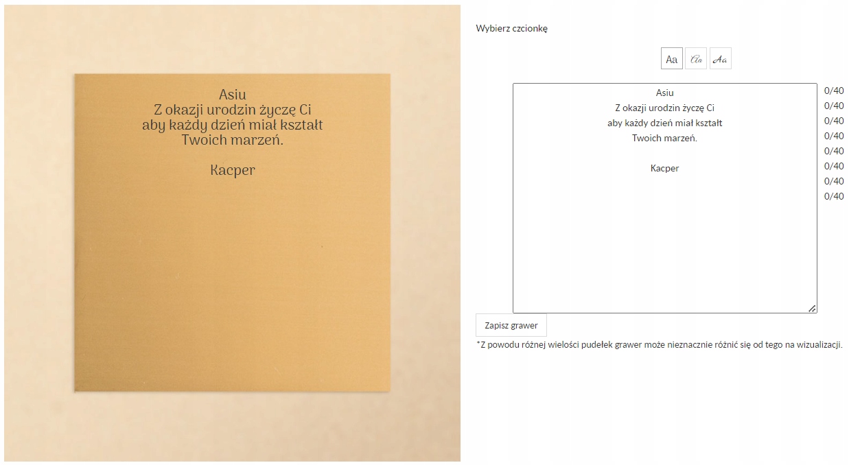 Укажите содержание гравировки в примечаниях к заказу.