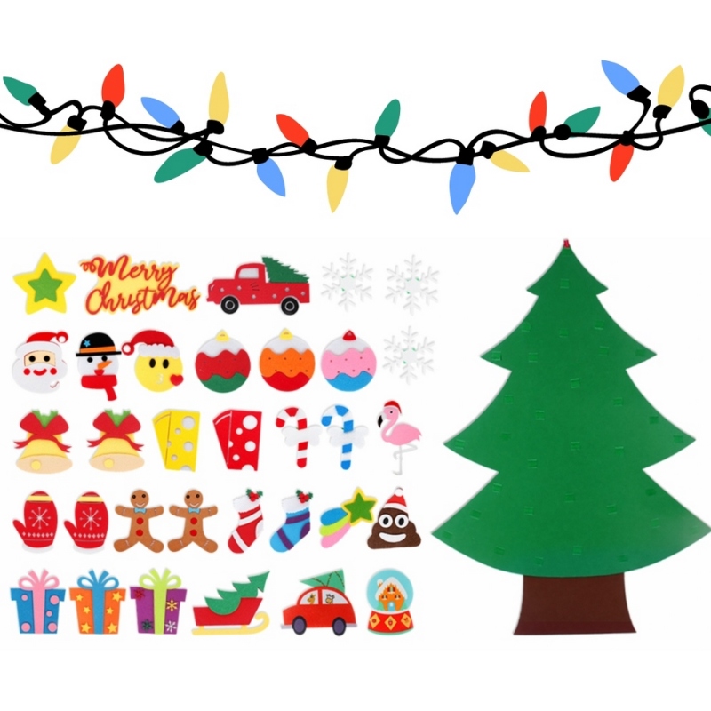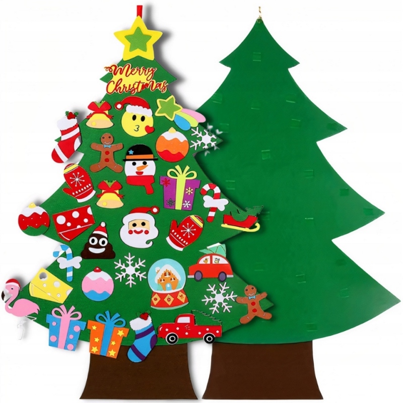 CHOINKA FILCOWA NA ŚCIANĘ Z OZDOBAMI 26EL. ZABAWKA DLA DZIECI ŚWIĘTA 96CM
