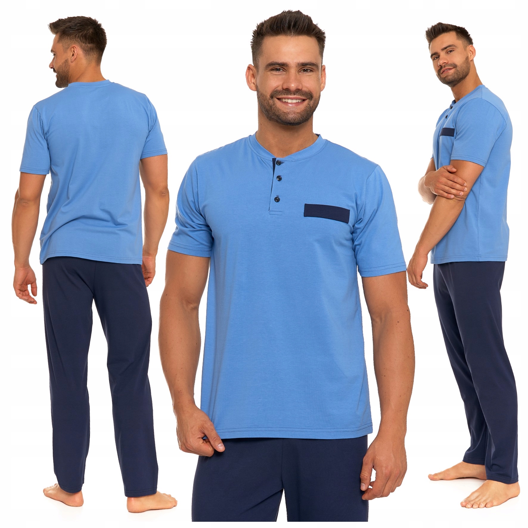 Мужские хлопковые пижамы синего оттенка – это квинтэссенция комфорта и стиля в одном лице. Идеальное сочетание коротких рукавов и длинных брюк создает непревзойденную гармонию комфорта и утонченности. Пижамный верх излучает простоту и элегантность. Короткие рукава гарантируют свободу движений, а изящная отделка выреза подчеркивает ее утонченный характер. Пижама изготовлена из хлопка высочайшего качества, мягкая и приятная на ощупь, обеспечивающая идеальный комфорт на каждом этапе ношения. Пижамы спокойного синего оттенка приобретают изысканность, сохраняя при этом вневременную эстетику. Длинные брюки – залог расслабления. Их посадка и свободный крой представляют собой идеальное сочетание комфорта и функциональности. Брюки изготовлены из мягкого хлопка и обеспечивают защиту от холода, сохраняя при этом нежность к коже. Регулируемый пояс обеспечивает индивидуальную настройку, а синий цвет продолжает целостность концепции, создавая гармоничный комплект. Пижамы – отличный выбор для мужчин, которые ценят отдых и комфорт в повседневные минуты. Оно, несомненно, станет незаменимым элементом вашего гардероба для тихих вечеров дома. Для тех, кто хочет совместить роскошный комфорт с простотой стиля, эта синяя хлопковая пижама — идеальный выбор.