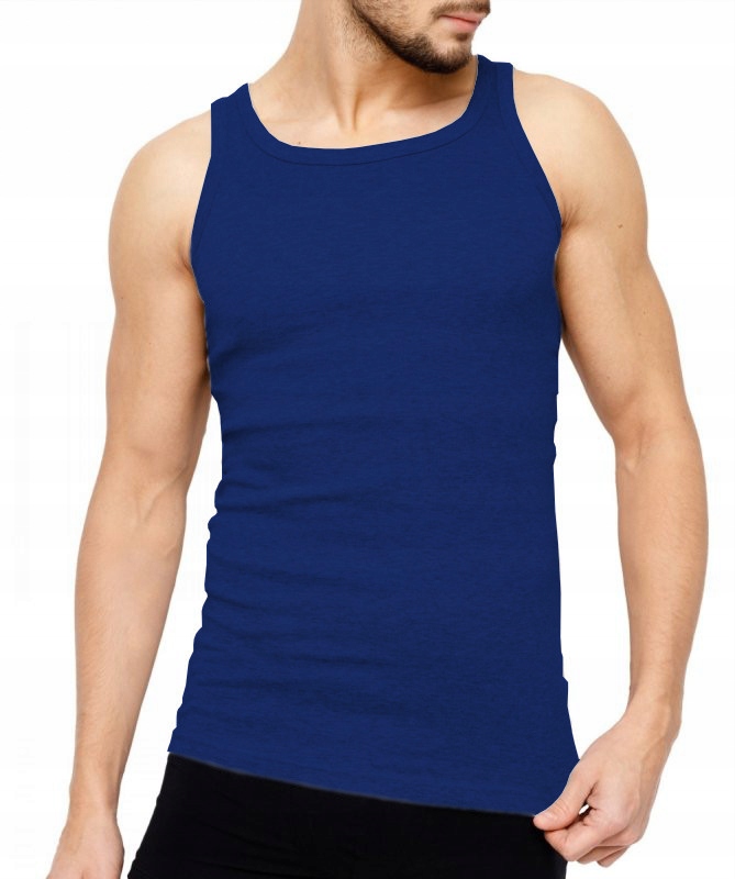 ФУТБОЛКА МУЖСКАЯ ИЗ 100% ХЛОПКА ОДНОРОДНАЯ СИНЯЯ, КРУГЛАЯ - XL