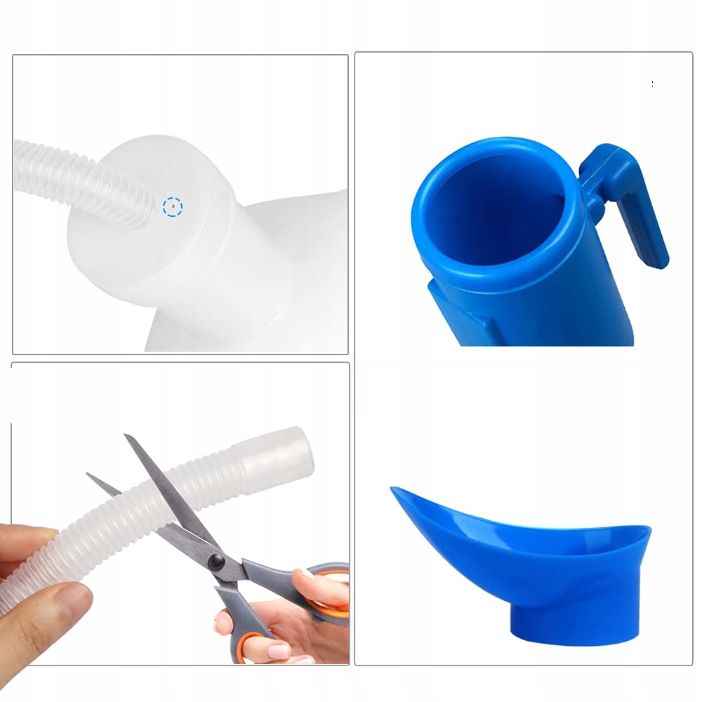 - Флакон для писсуара 3 в 1: Сочетая в себе длинный шланг и воронку, получается женский писсуар. Если просто подключить длинный шланг, то получится мужской писсуар. После снятия длинного шланга получается переносная бутыль для писсуара.