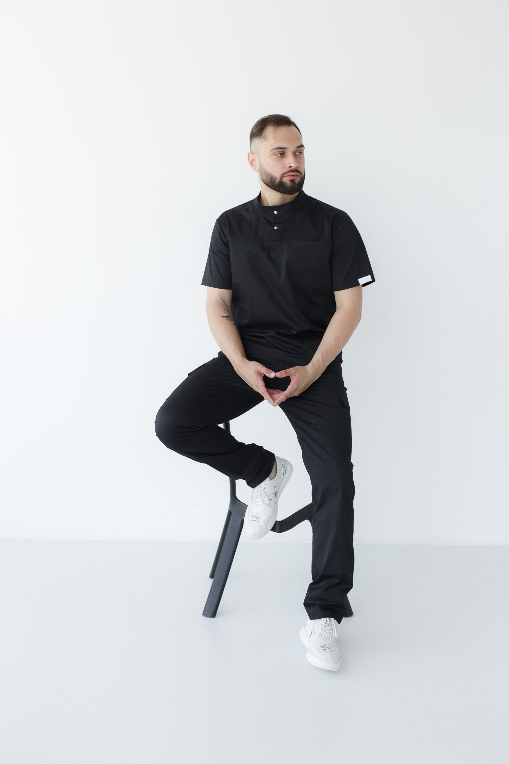 Медицинский комплект мужской «Денвер» представляет собой удобный комплект, состоящий из медицинской рубашки с короткими рукавами и брюк-карго. Верх имеет прямой крой, а левый рукав украшен нашивкой с логотипом. Воротник-стойка и неглубокий вырез горловины застегиваются на две кнопки. Декоративная строчка спереди скрывает под ней функциональный карман. Брюки-карго слегка заужены к низу, имеют среднюю посадку и оснащены широким эластичным поясом для свободы движений. Декоративная искусственная мушка добавляет элегантности. Брюки имеют четыре вместительных кармана: два накладных над поясом и два накладных ниже линии бедер, закрывающиеся клапанами. Комплект изготовлен из высококачественного хлопка с добавлением эластана и полиэстера. Ткань легкая, имеет легкий блеск, не деформируется после стирки и позволяет коже дышать. Денвер - отличный выбор для специалистов медицины и косметологии, ценящих и комфорт, и стиль.