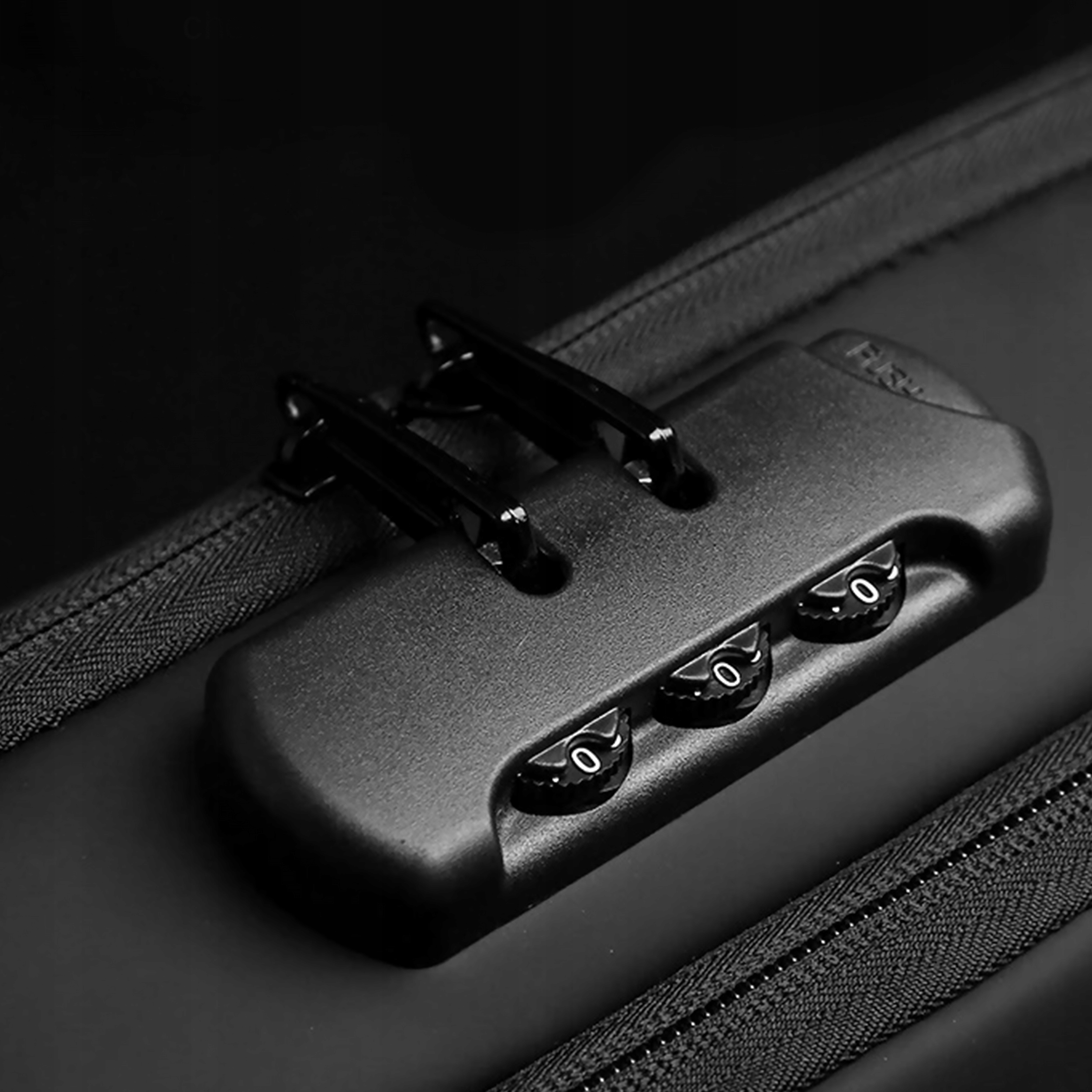 Рюкзак оснащен противоугонной системой. Основное отделение может быть защищено от открытия навесным замком с трехзначным кодом.