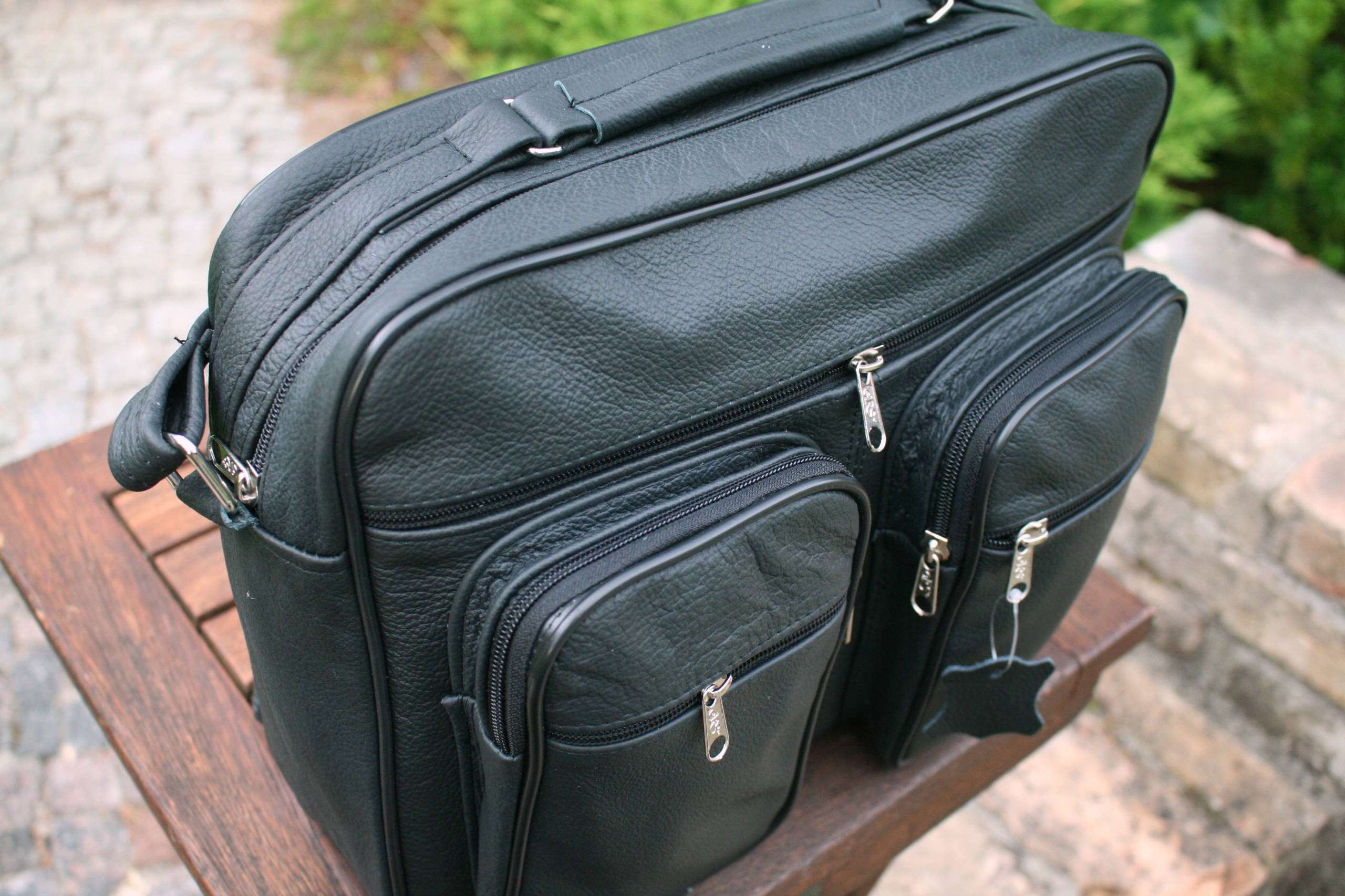 Чоловіча шкіряна сумка через плече чорного кольору з ручкою, поштова сумка польського виробництва