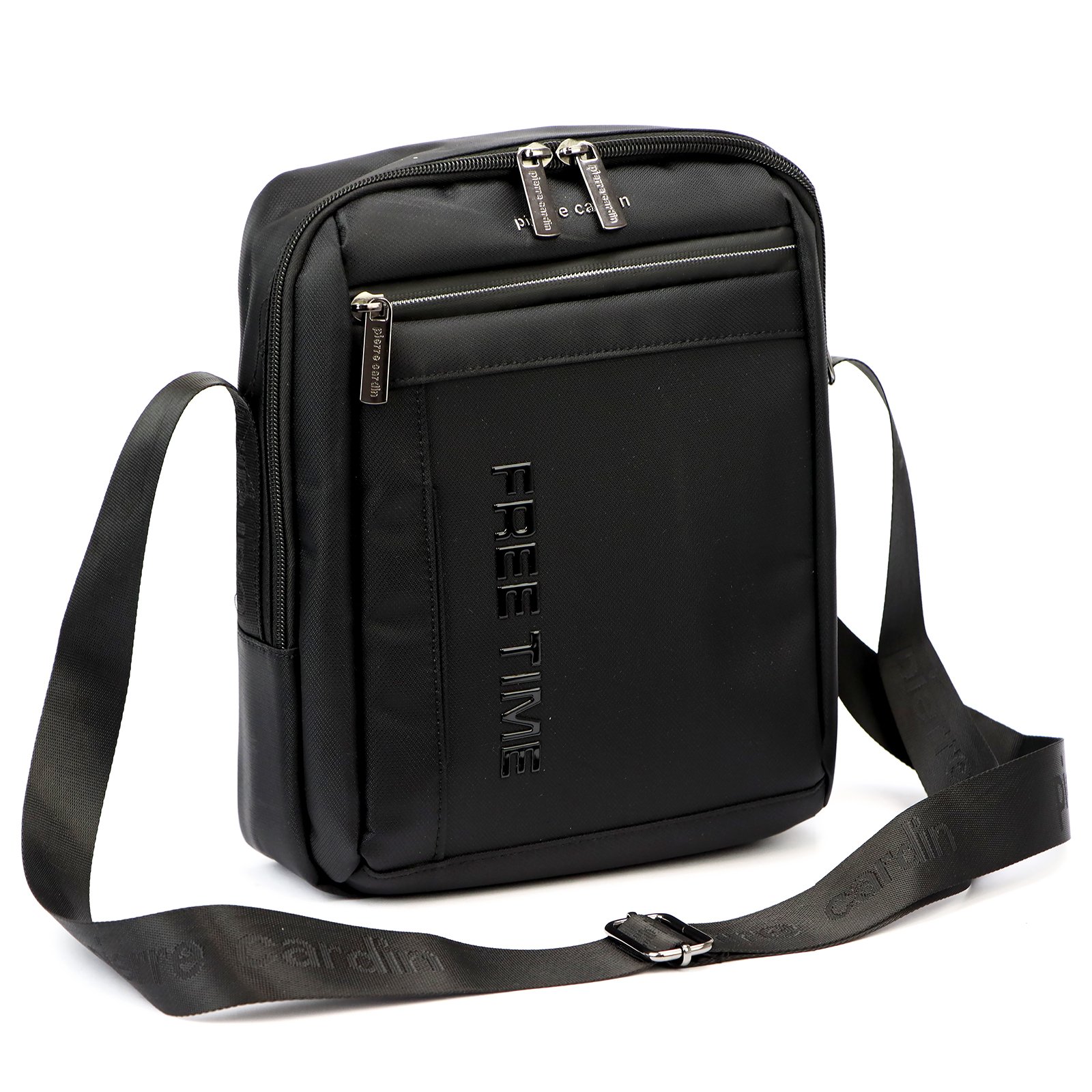 ЧОЛОВІЧА СУМКА ЧОЛОВІЧА НА ПЛЕЧІ PIERRE CARDIN , ЧОРНА, ЛОГОТИП НА ШИРОКОМУ РЕМІНЦІ