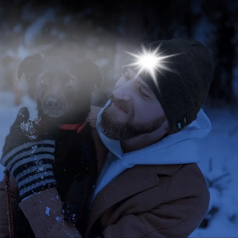 - Прогулка с собакой - даже вечером шапка сделает вас заметным благодаря функции LED.