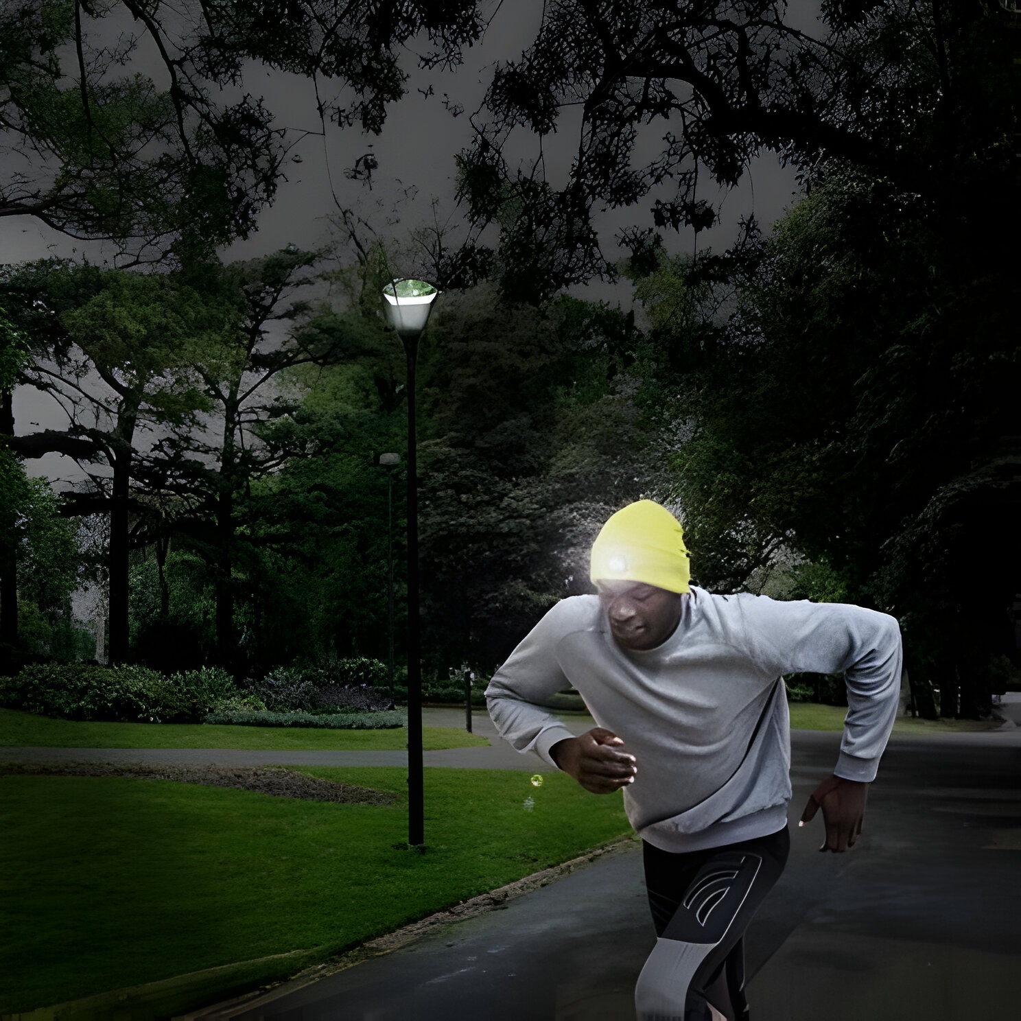 - Прогулка с собакой - даже вечером шапка сделает вас заметным благодаря функции LED.