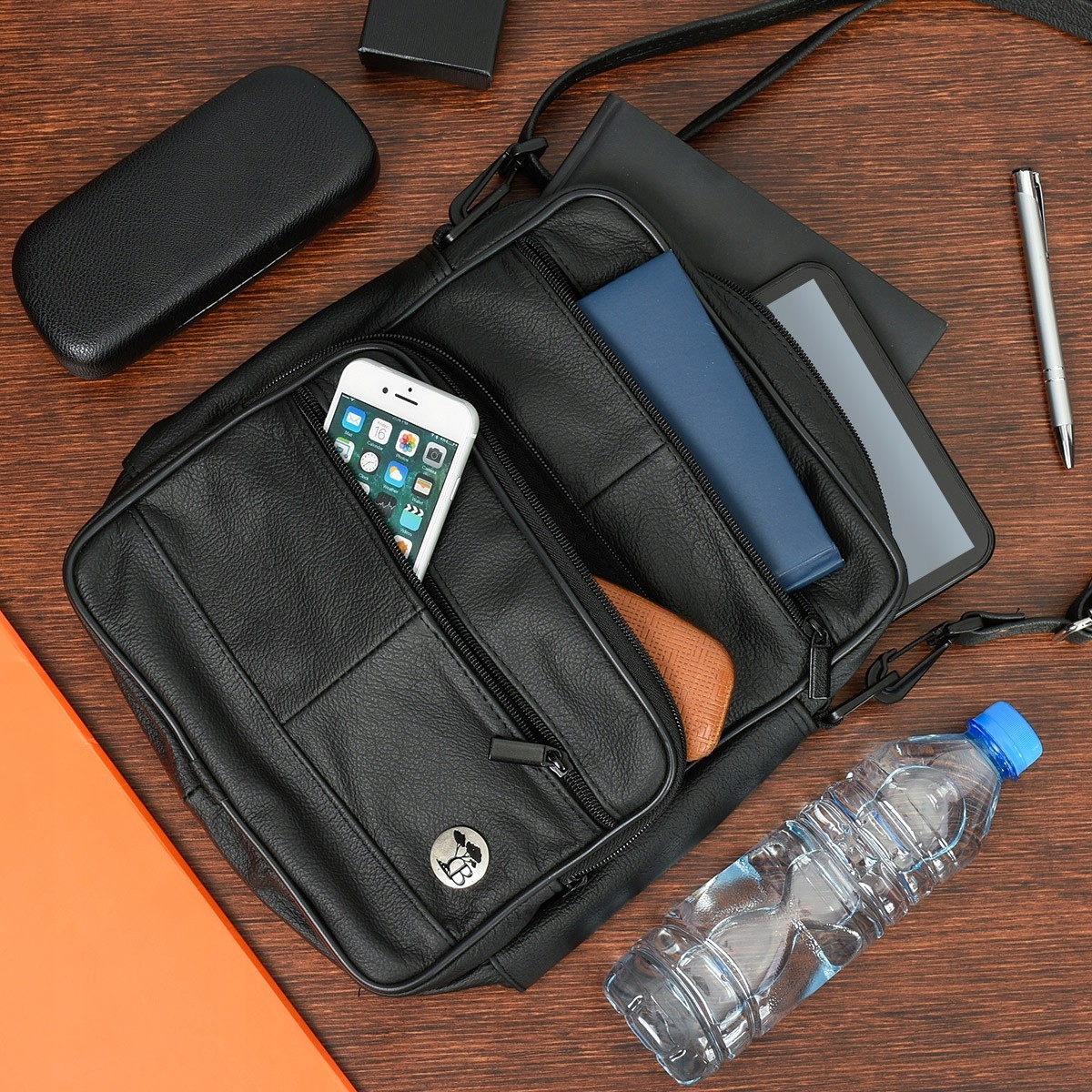 - удобная кожаная ручка,