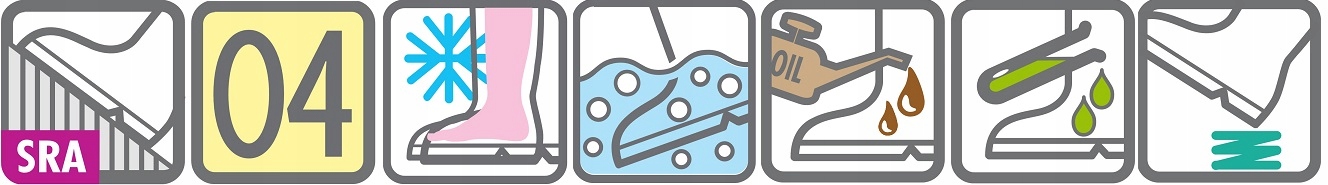 - Сертификат О4 Обувь обладает противоскользящими свойствами, противоскользящими электростатические свойства и поглощают энергию в области пяток. Они протестированы и сертифицированы в соответствии со стандартом EN ISO 20347: 2012.