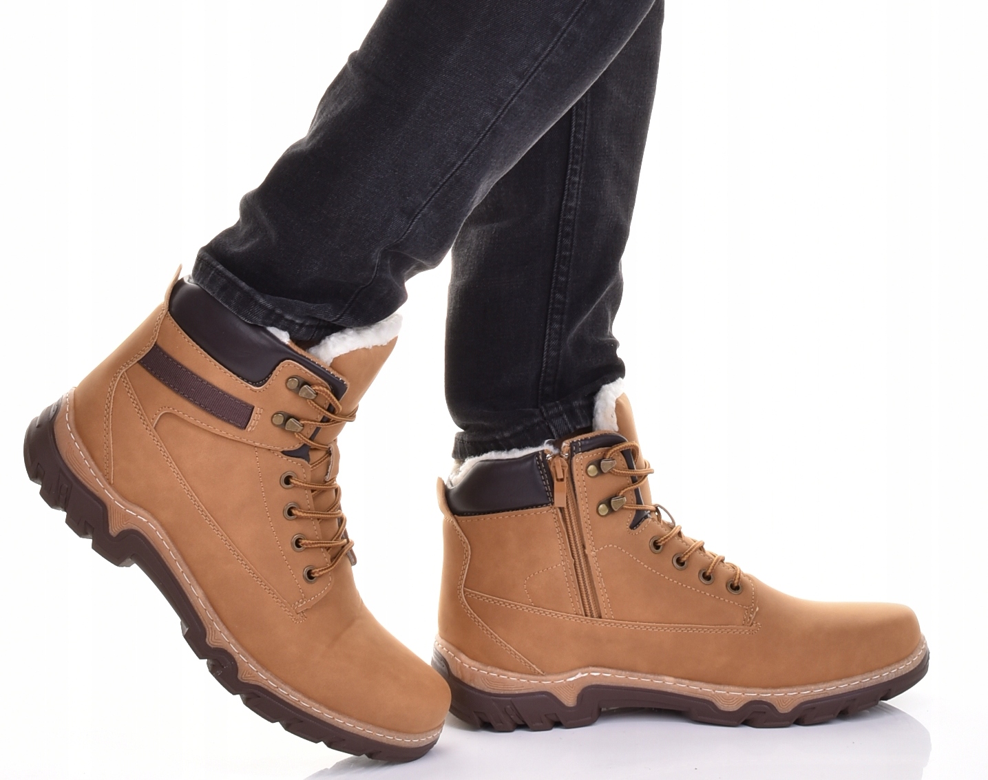 ОБУВЬ ЗИМНЯЯ МУЖСКАЯ, УТЕПЛЕННАЯ, БОТИНКИ ИЗ ЭКО КОЖИ, КОРИЧНЕВЫЕ, МОДНЫЕ СНЕЖНЫЕ БОТИНКИ