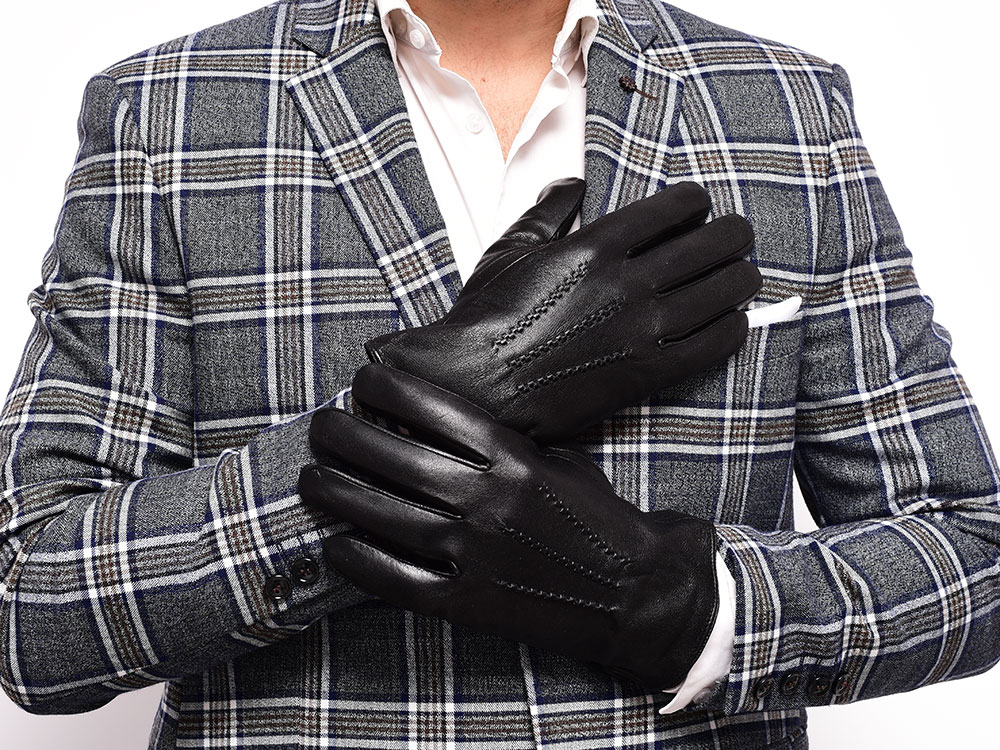 ЧЕРНЫЕ МУЖСКИЕ КОЖАНЫЕ ПЕРЧАТКИ