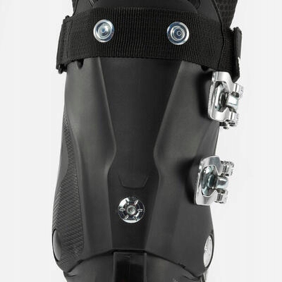 Лыжные ботинки 500 оснащены 4 микрометрическими алюминиевыми пряжками, обеспечивающими прочную и точную посадку. Вы можете отрегулировать длину пряжки, затянув или открутив ее, чтобы подобрать индивидуальную посадку. Две верхние пряжки имеют 3 положения, что позволяет подогнать их под любую икру (для этого понадобится отвертка). Широкий ремешок позволяет легко и плотно затянуть верхнюю часть корпуса.