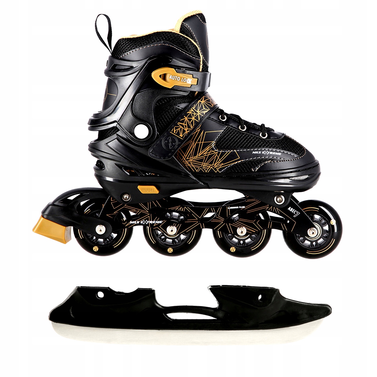 NH18192 РОЛИКОВЫЕ КОНЬКИ 4в1, ЧЕРНЫЕ И ЗОЛОТЫЕ РАЗМЕРЫ (29-33) С РАЗМЕРАМИ ПЛ. ФИГУРА NILS EXTREME