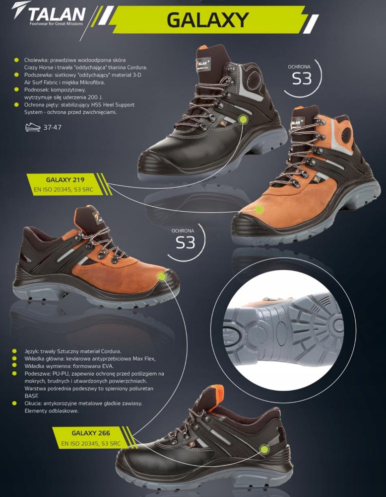 Туфли соответствуют Galaxy. b>S3 уровень защиты. Благодаря композитному носку Toe Cover они обеспечивают защиту пальцев ног от ударов 200 Дж.