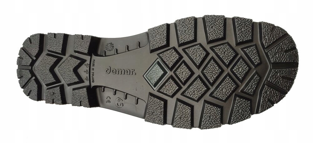 Подошва из терморезины гибкая и не меняет своих свойств при низких температурах. Резной протектор не скользит, обеспечивая устойчивость и безопасность в неблагоприятных условиях, например, на неровных, скользких поверхностях в горной и лесной местности.