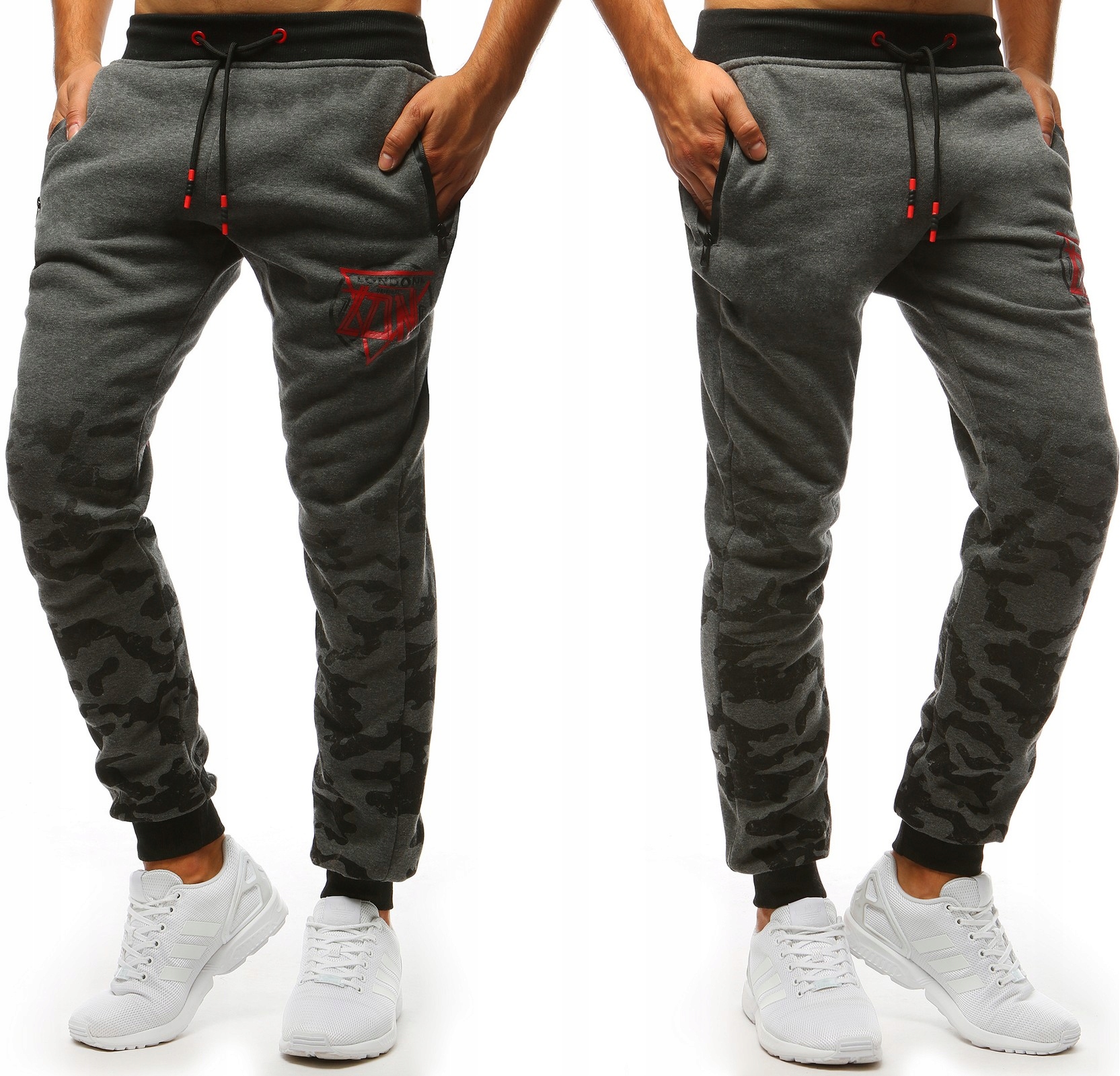 - Принт на левом кармане и на штанинах.