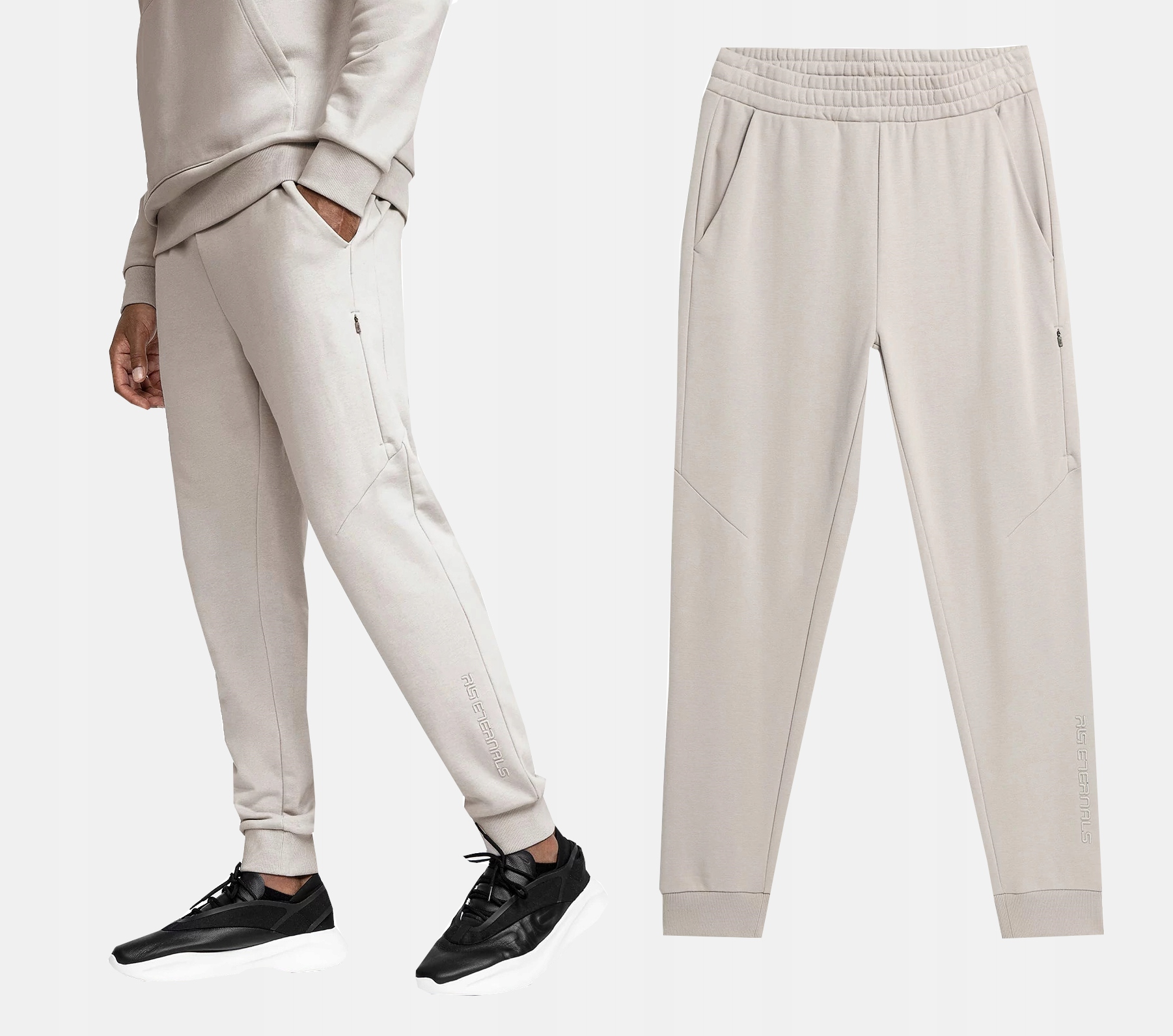 В брюках использованы органический хлопок и переработанный полиэстер (они содержат не менее 78 % органического хлопка и 22 % переработанного полиэстера). Антибактериальное покрытие способствует более длительному сохранению свежести и долговечности одежды. Благодаря этому их можно носить как каждый день, так и во время физических нагрузок.