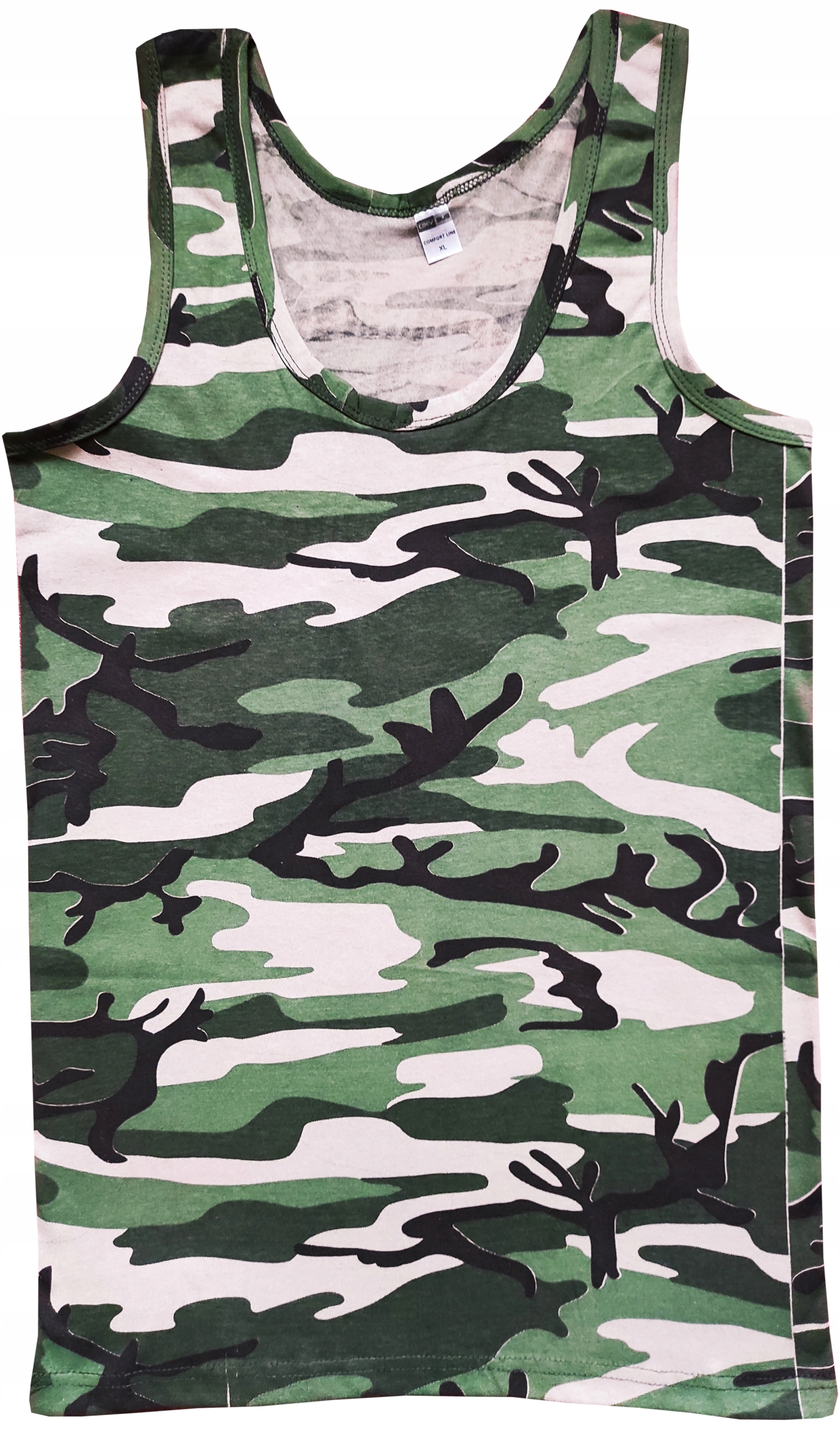 Классическая камуфляжная майка на бретелях, изготовлена из очень качественного материала, приятного на ощупь и эластичного. Воздушная и удобная футболка.