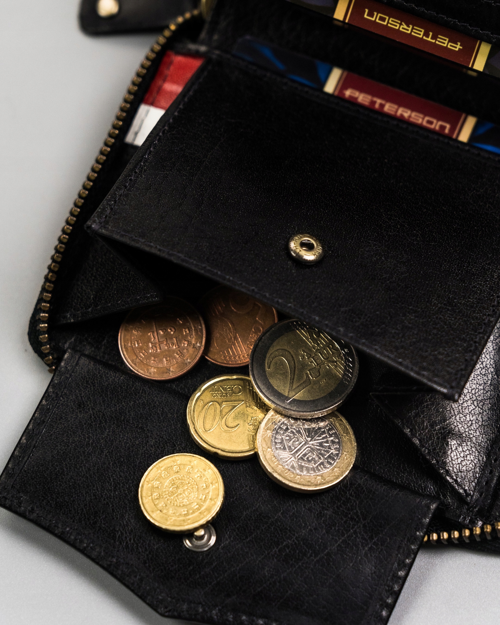 В карманы для монет и банкнот можно поместить большую сумму наличных денег.