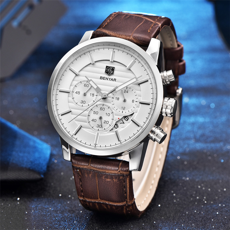 МУЖСКИЕ КЛАССИЧЕСКИЕ ЧАСЫ-ХРОНОГРАФ BENYAR + КОРОБКА
