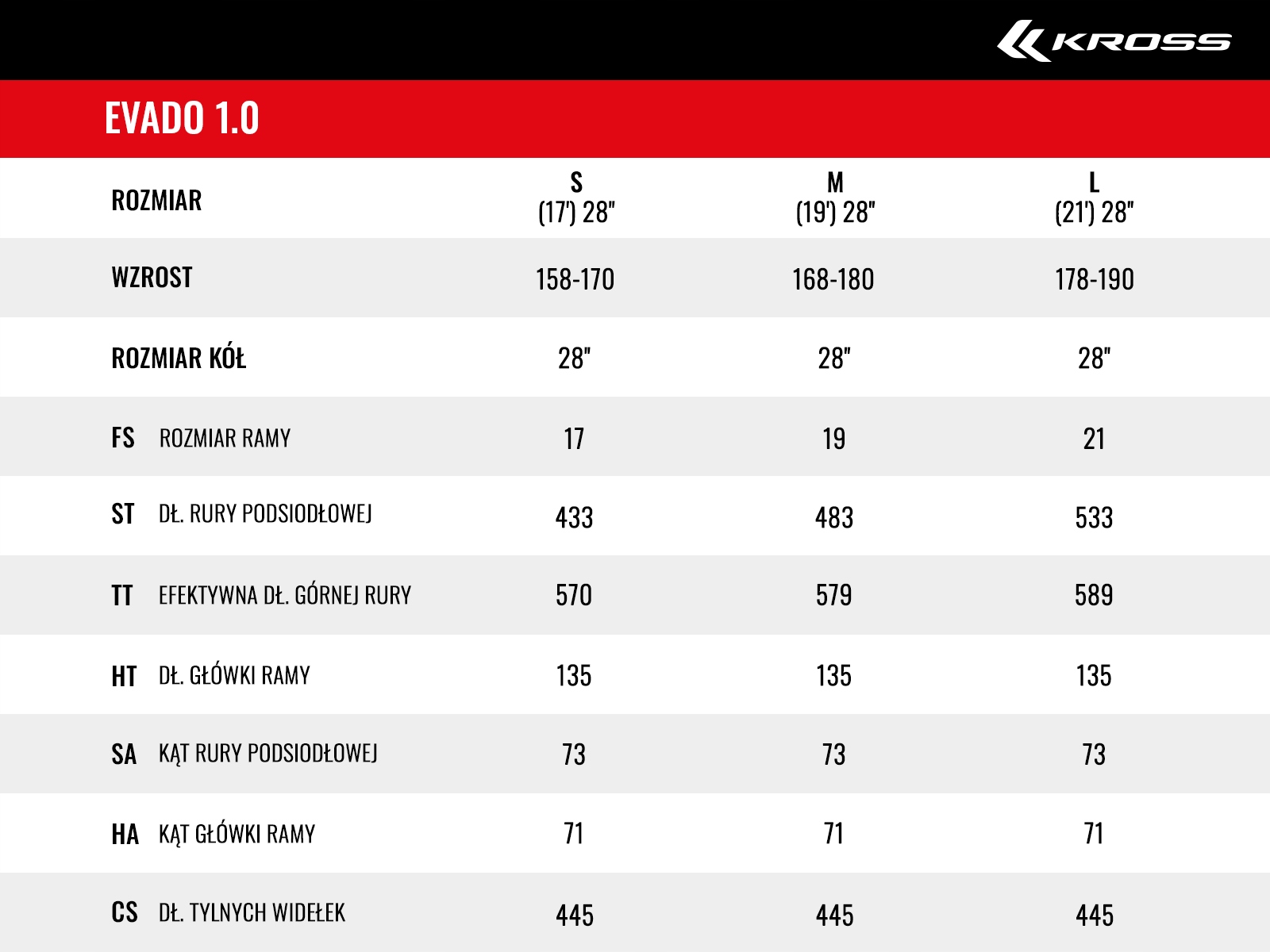 KROSS Evado 1.0 — наша базовая модель кроссового велосипеда. И хотя он возглавляет список мотоциклов в этом сегменте, ему нечего стыдиться. Проверенные компоненты и решения, удобная геометрия и адаптация практически к любой местности – вот особенности, отличающие его от конкурентов. Кроссовый велосипед KROSS Evado 1.0 представляет собой идеальное сочетание нескольких различных типов велосипедов — в первую очередь трекинговых и горных.