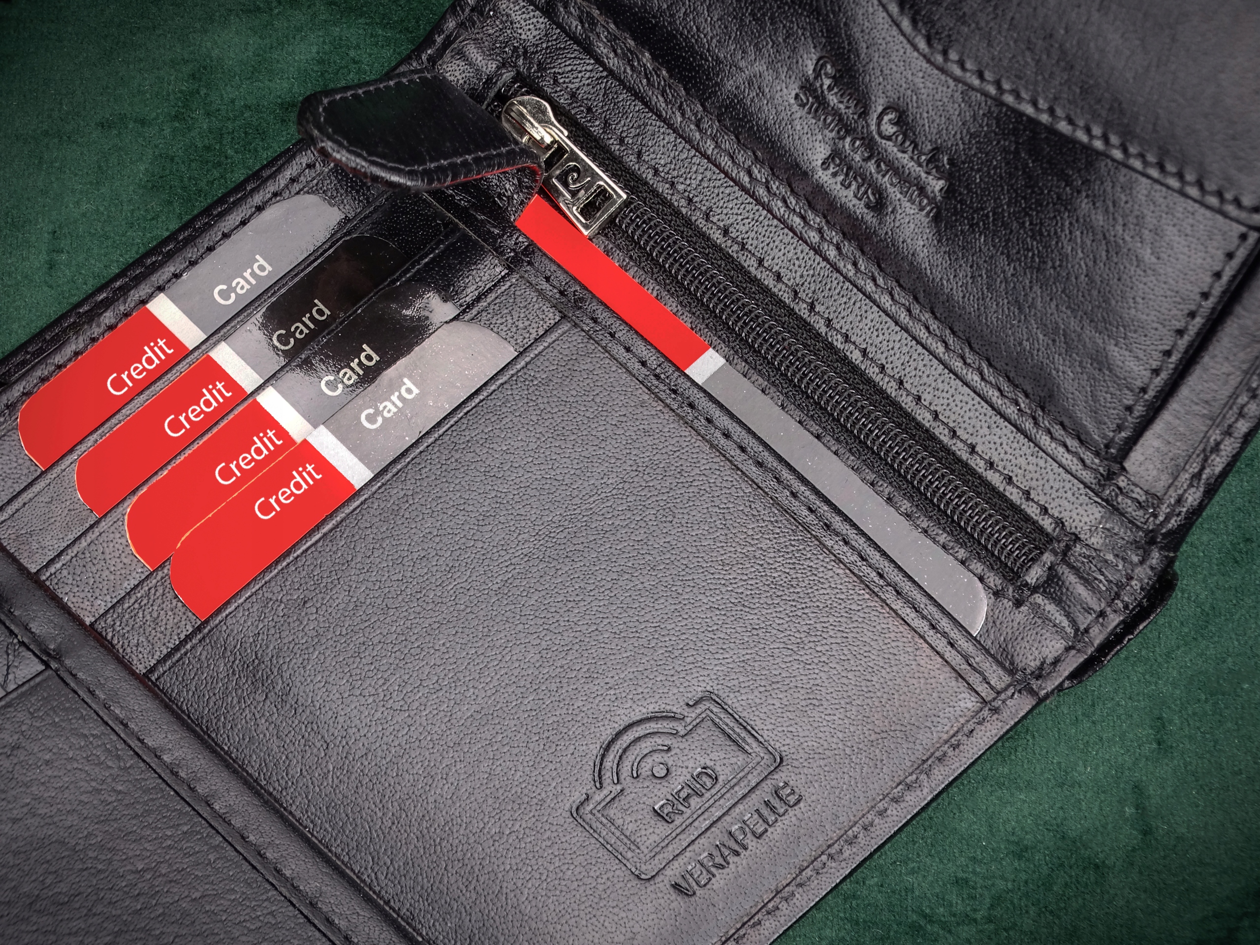 ✔ Подкладка RFID предотвращает неконтролируемое считывание данных с помощью бесконтактных считывателей используется для кражи данных и платежных средств, например, в общественном транспорте или других людных местах.
