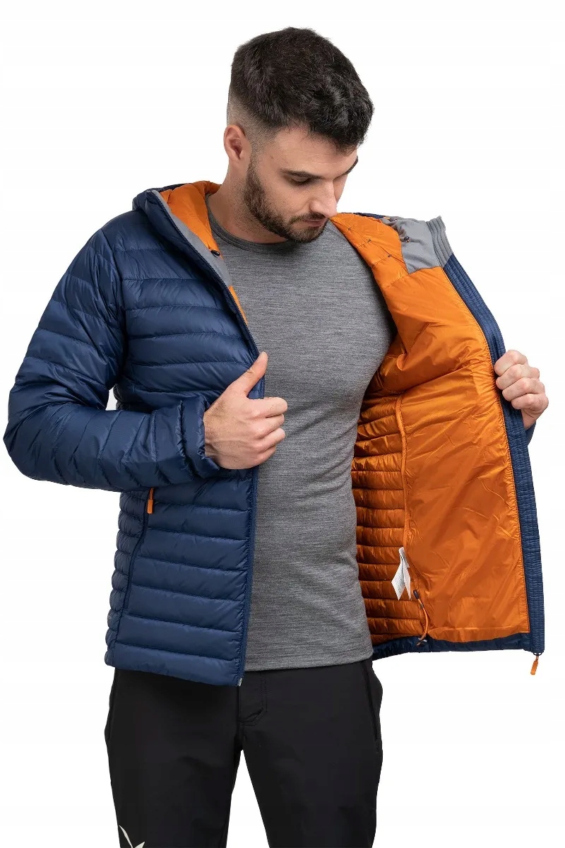Пуховик Раб имеет теплый капюшон, соединенный с защитой. Капюшон регулируется, а его край сверху усилен, поэтому материал не спадает на лоб. Три кармана застегиваются на молнии YKK®. Один карман нагрудный, два идеально подходят для рук. Низ куртки можно регулировать с помощью кулиски, а эластичные манжеты регулируются сами.