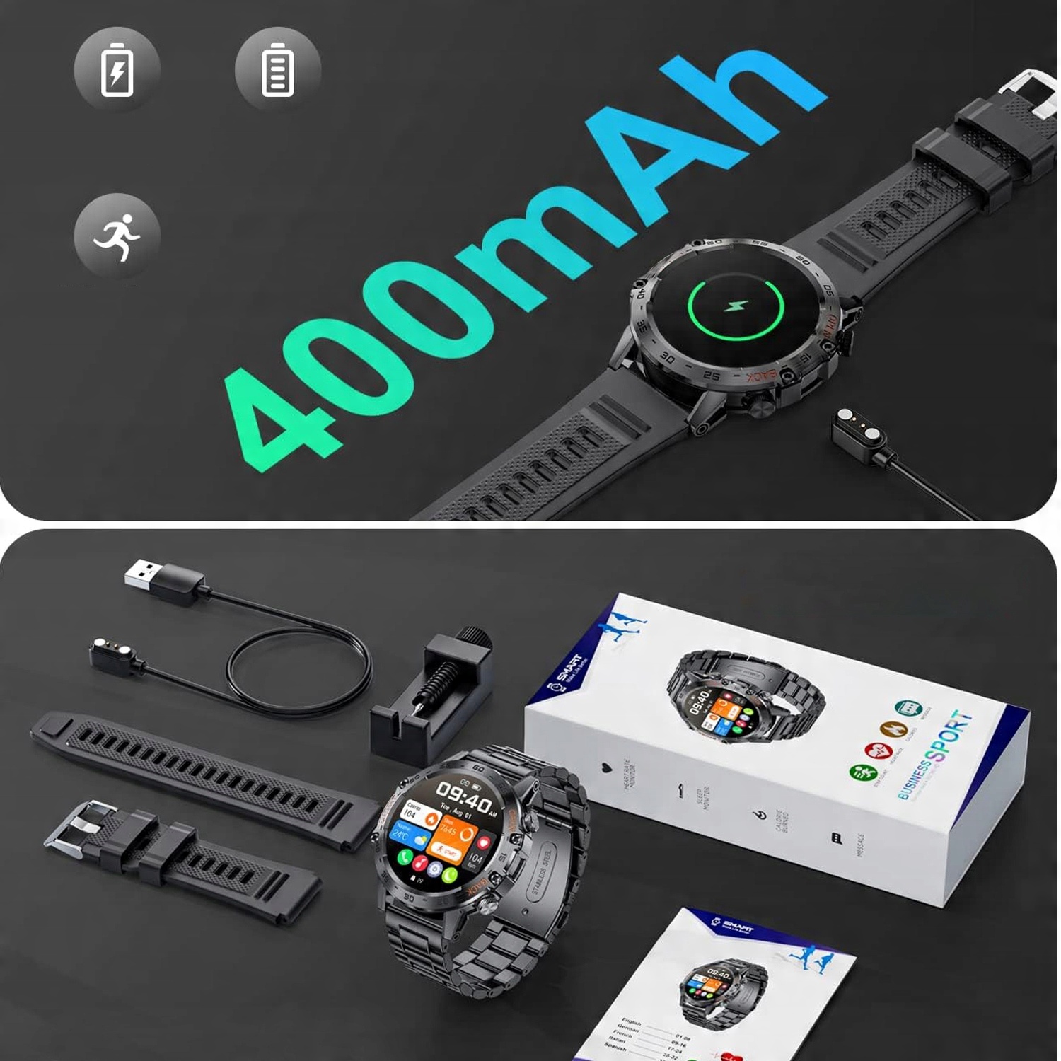 - 🔸Военные тактические умные спортивные часы оснащены аккумулятором емкостью 400 мАч, временем автономной работы до 30 дней и нормальным временем работы до 7 дней. -10 дней.