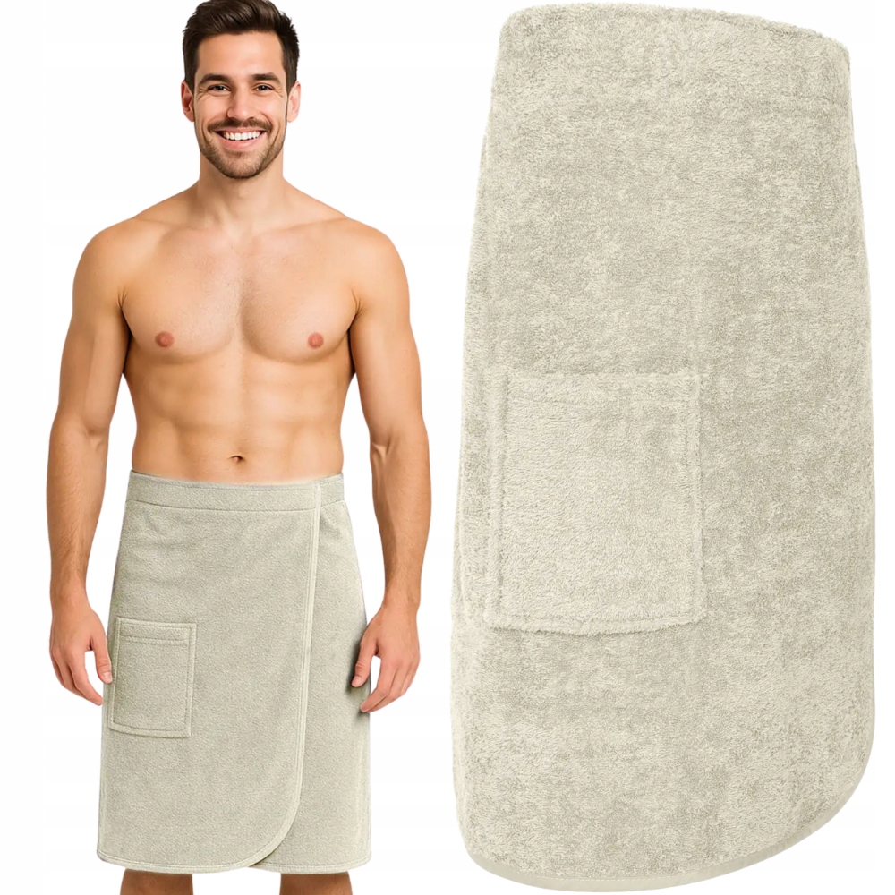 МУЖСКОЕ ПОЛОТЕНЦЕ ДЛЯ САУНЫ, СПА И БАССЕЙНА НА ЗАВЕЛКРО КИЛТ, БЕЖЕВЫЙ ХЛОПОК С КАРМАНОМ