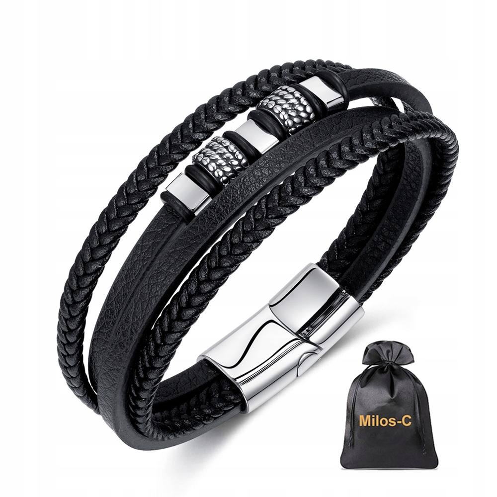 Браслет изготовлен из кожи высочайшего качества и стали 316L. Он состоит из двух плетеных полосок с декоративными бусинами на них. Удобная и быстродействующая застежка из стали обеспечивает исключительный комфорт ношения каждый день.