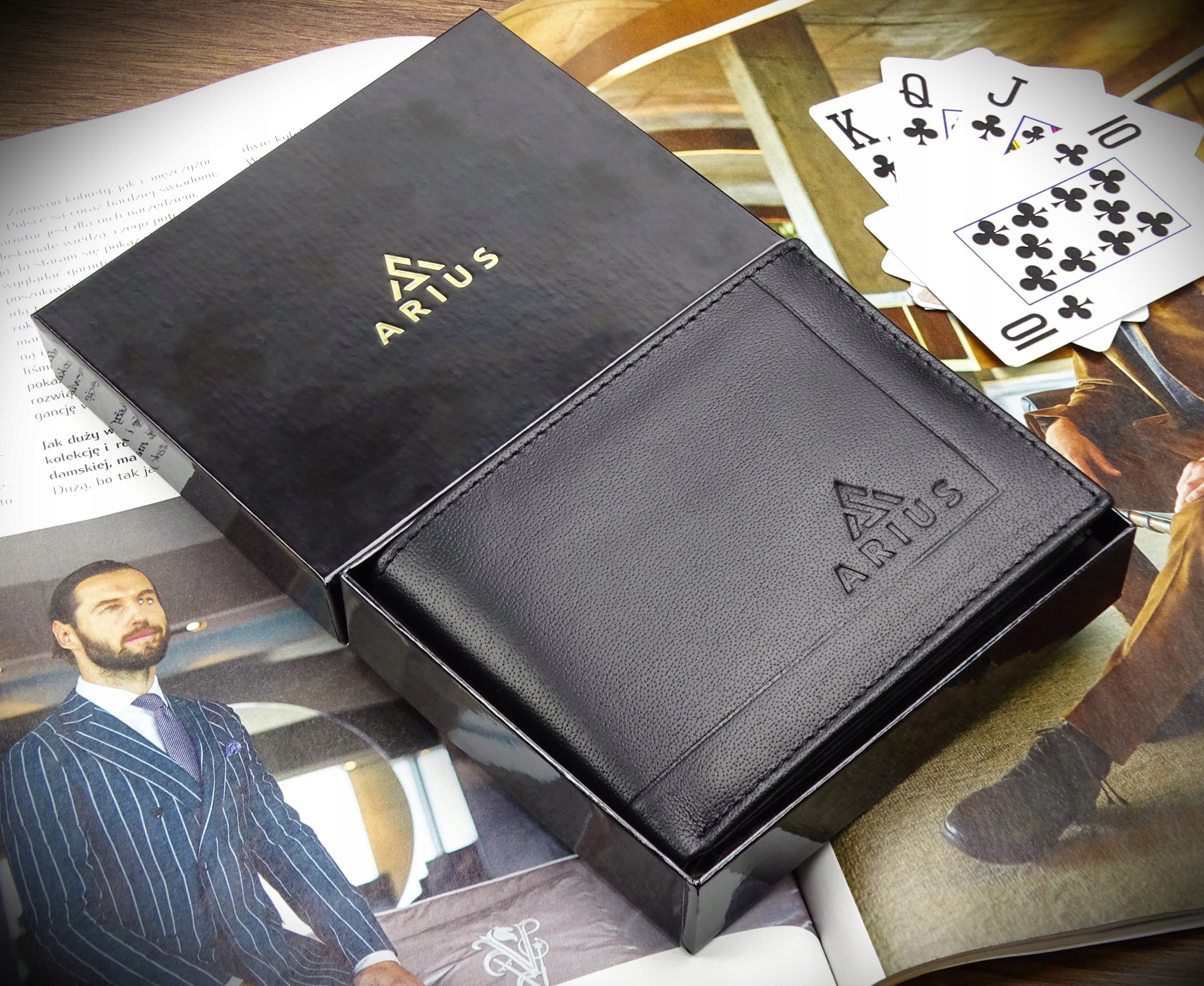 Эта модель — новация мужского стиля. Никогда раньше на польском рынке не было такого кошелька. Это новинка – новое предложение бренда Arius®. Кошелек изготовлен из натуральной кожи. Классический черный цвет сочетается с любым нарядом, а современный крой делает кошелек подходящим для мужчин, которые ценят каждую деталь.
