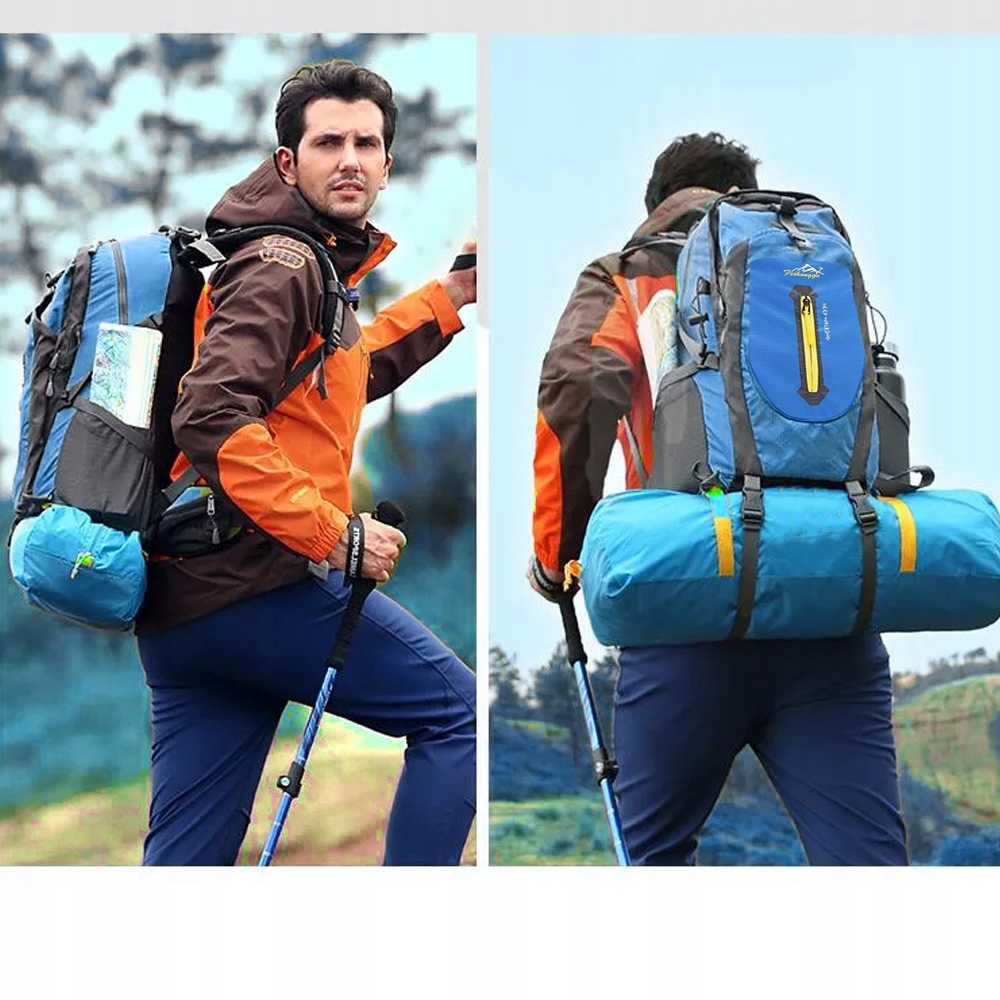 вентилируемая спинка на сетчатой подкладке и плечевые лямки обеспечивают циркуляцию воздуха между спиной и рюкзак, удобный во время длительных походов, 2 регулируемых ремня и 2 компрессионных ремня для подвешивания трекинговых палок, штатива, палатки, спального мешка, другого снаряжения и усилений.