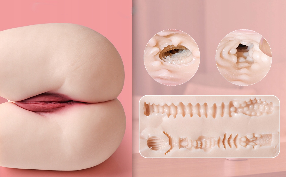 Эта мужская секс-игрушка имеет два отдельных плотно закрытых вагинальных и анальных туннеля. Мягкая стенка влагалища выстлана 6 гибкими крупными бусинами, покрытыми линиями. Жемчужины в анусе мельче, чем во влагалище.