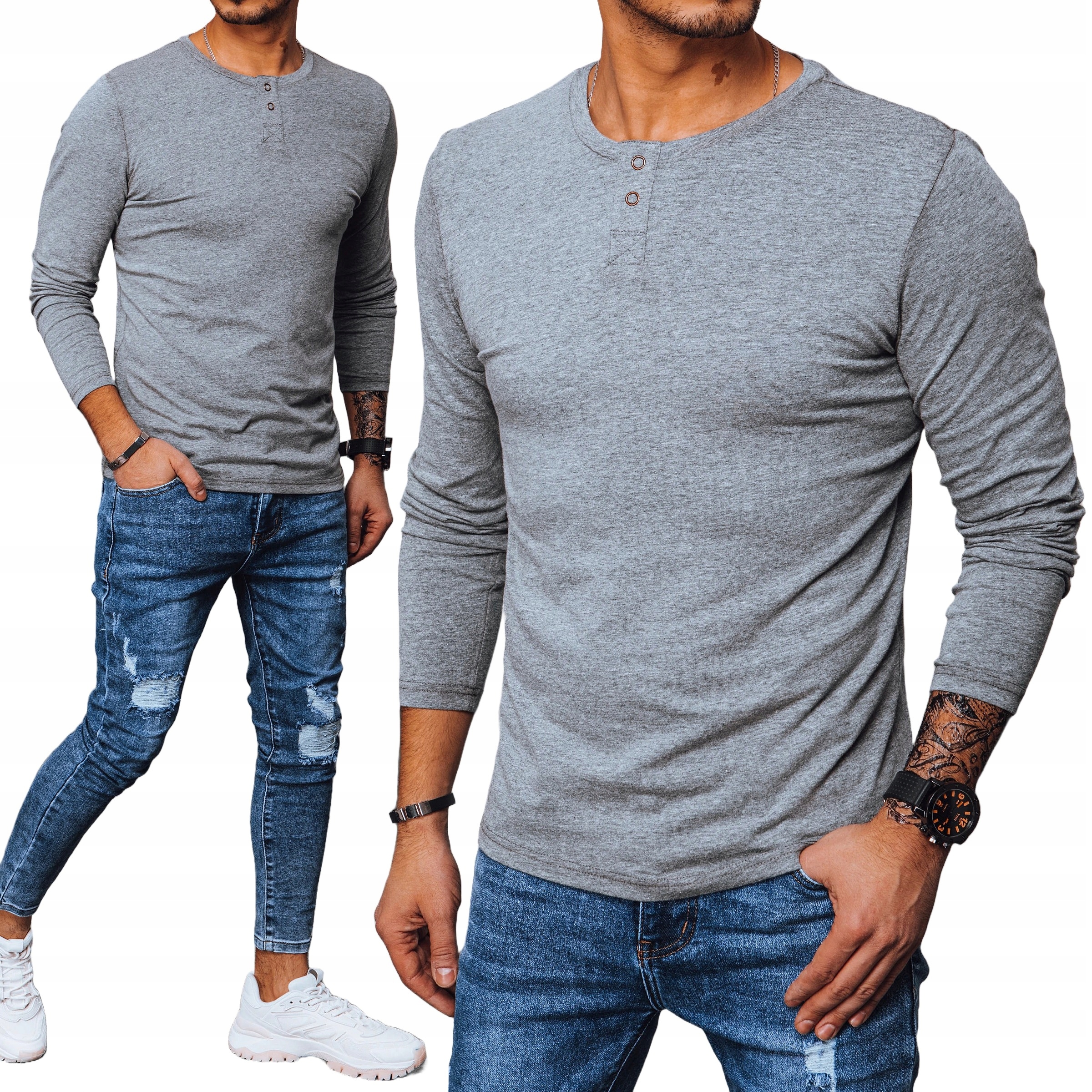 ЧОЛОВІК З ДОВГИМИ РУКАВАМИ СІРИЙ lx0418 - XXL