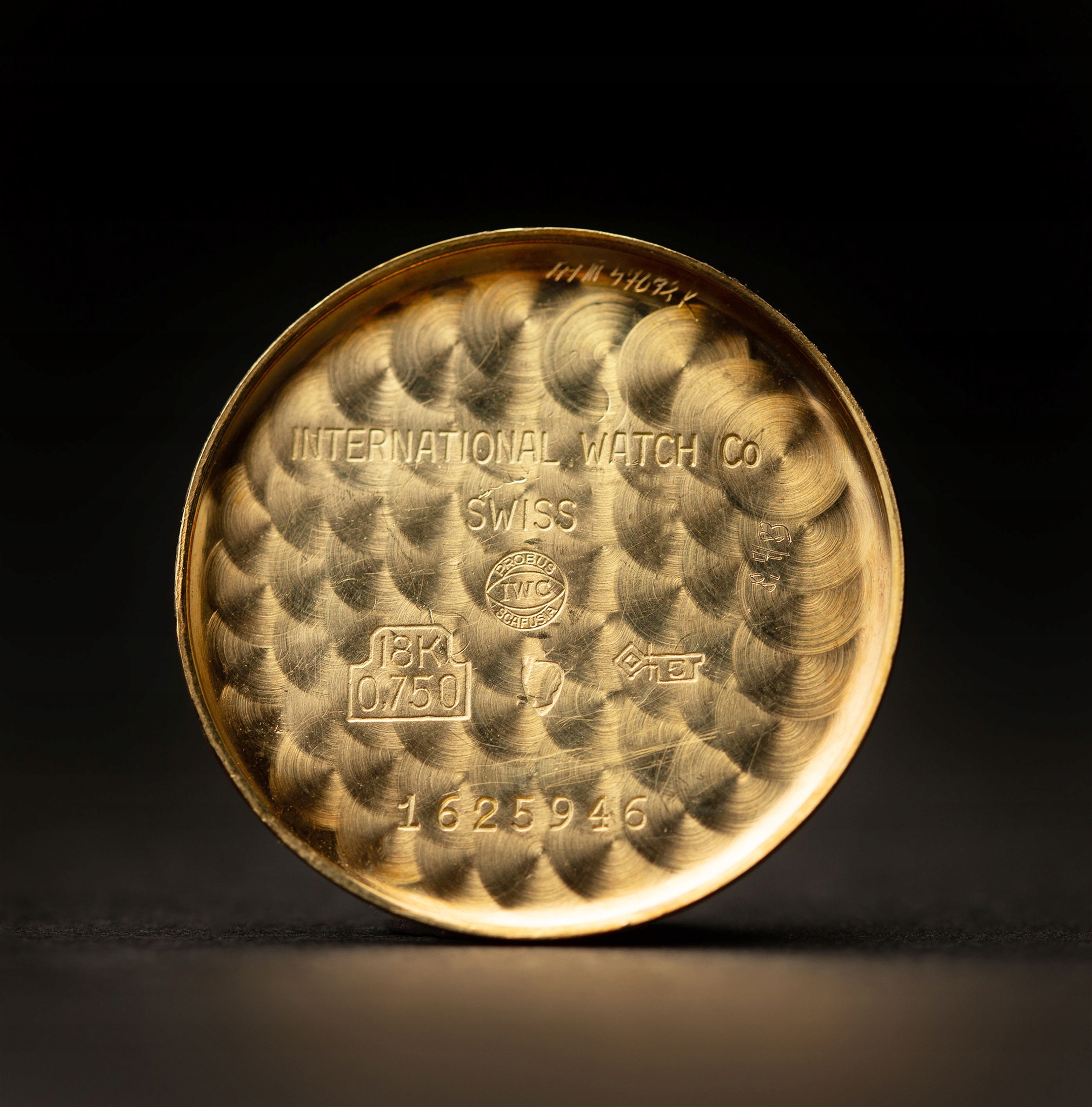 время и место творения: Швейцария - Международная часовая компания, Schaffhausen . Часы помечены на внутренней стороне конверта: "International | Watch Co | Swiss | 18K | 0,750 |". Номер оболочки: 1625946, номер механизма 1615899.