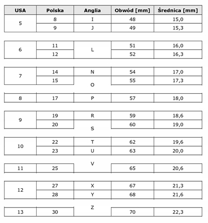 Таблица внизу страницы носит исключительно иллюстративный характер и используется для чтения значений диаметра и окружности польских размеров. .