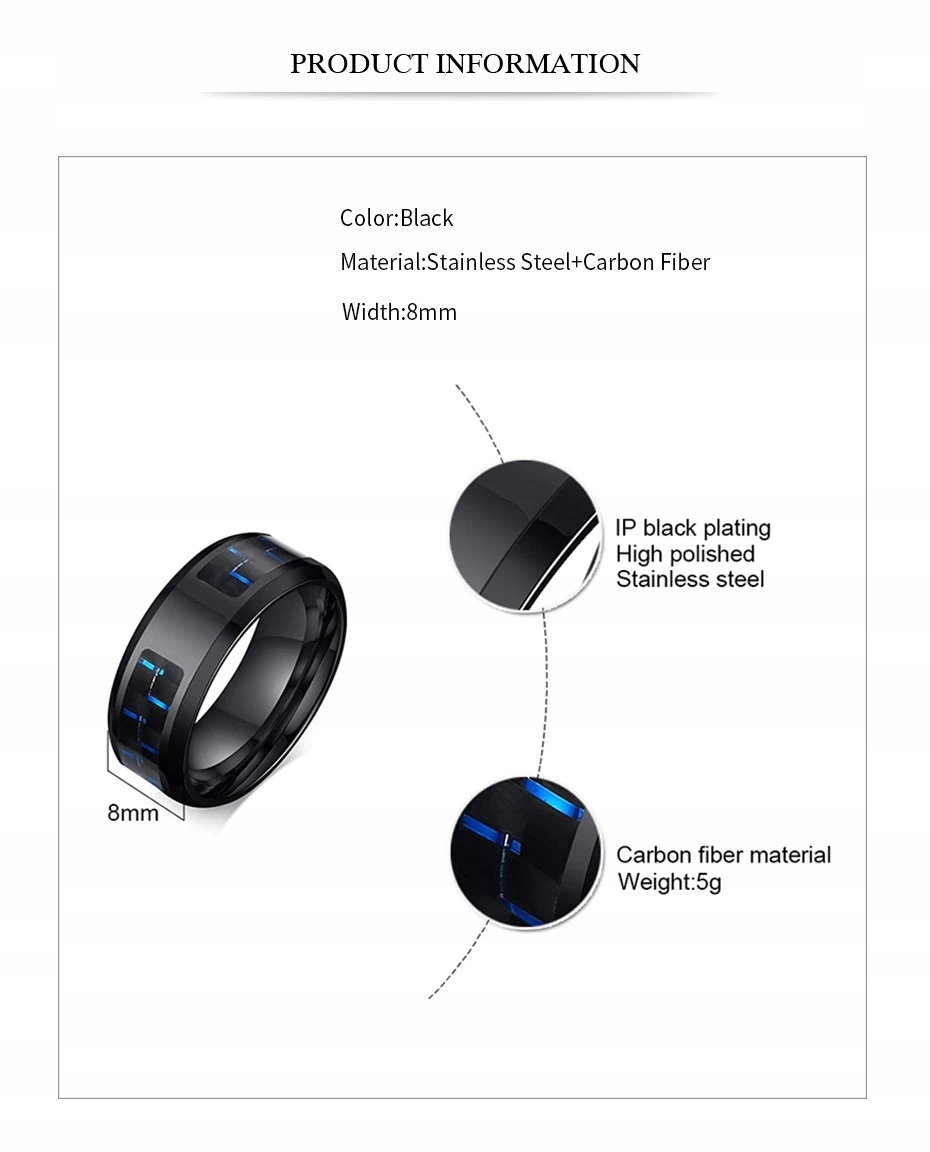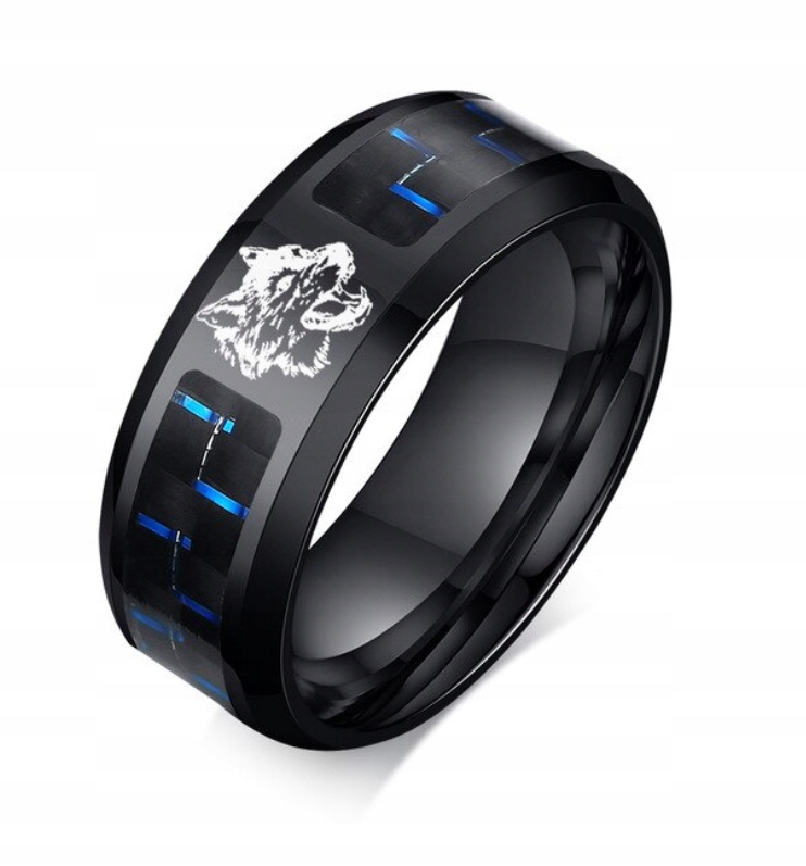 ЧОРНА ОБРУЧКА З ПЕЧАТКОЮ З ВУГЛЕВОГО ВОЛОКНА WOLF R22