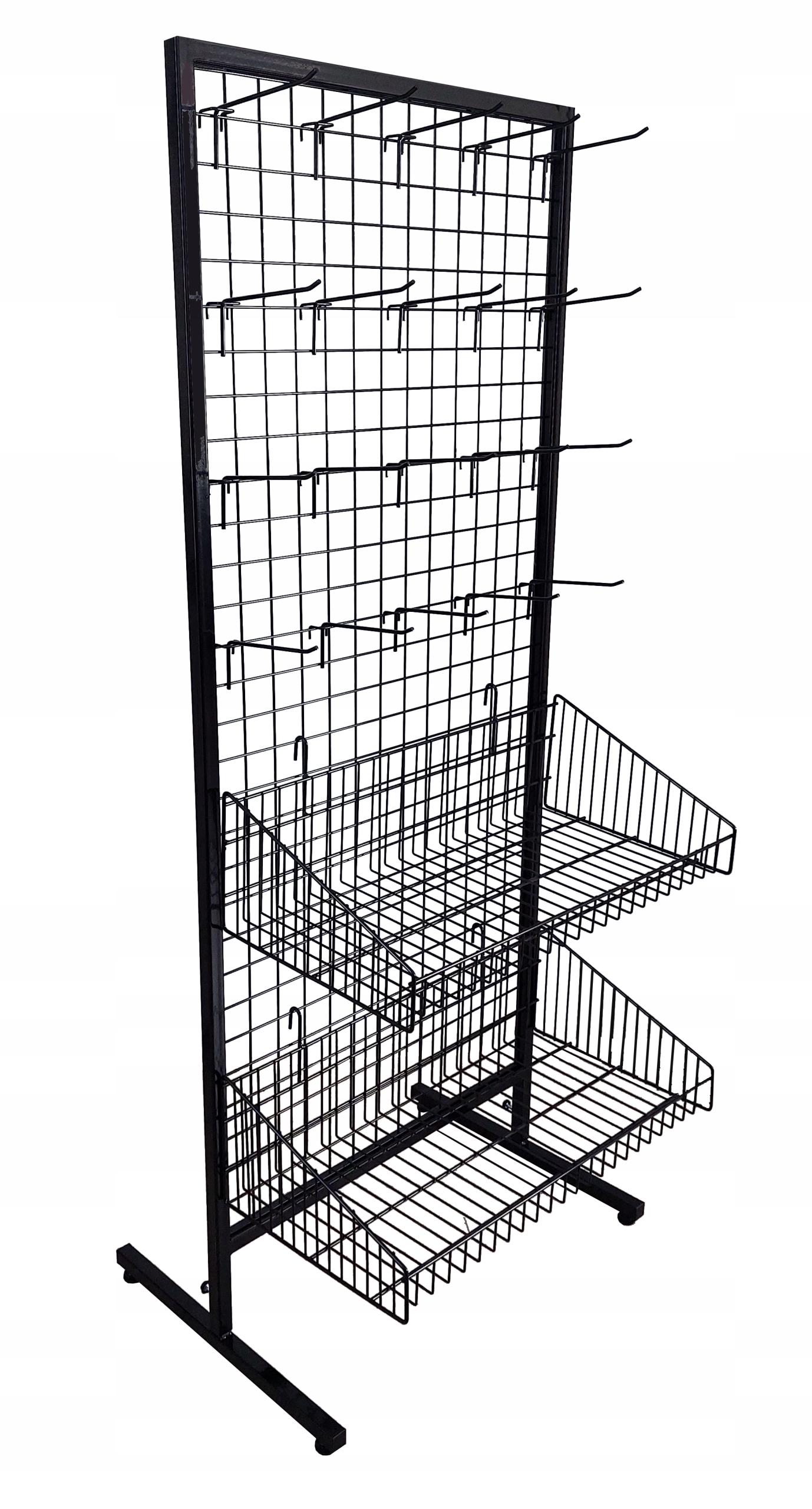 Новая подставка, двусторонняя витрина с 20 крючками, 2 корзинами и местом для рекламы.