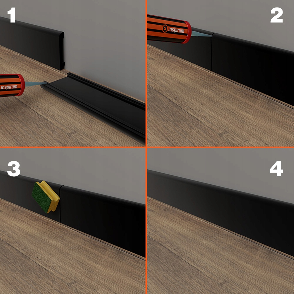 Если зазоры появляются при соединении планка к стене (кривые стены), мы также маскируем их с помощью монтажного клей Inspirum.