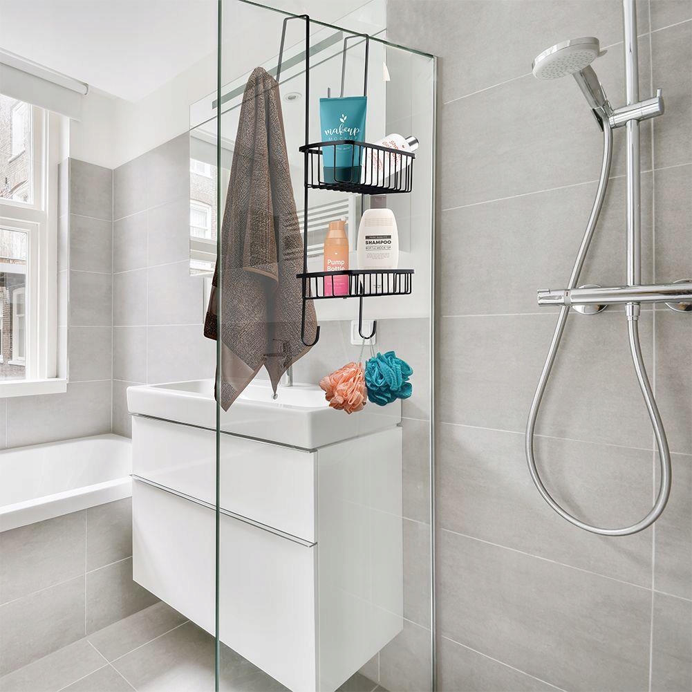 Двухуровневая полка для ванной для подвешивания на душевую кабину.