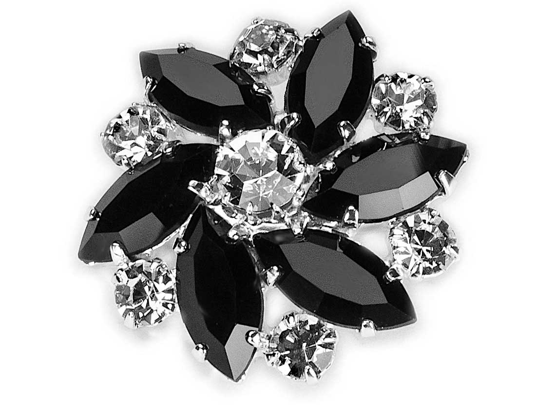 Цвет: блестящие кристаллы (хрусталь) и черный (гагат), в металлической оправе с настоящим УФ-серебрением