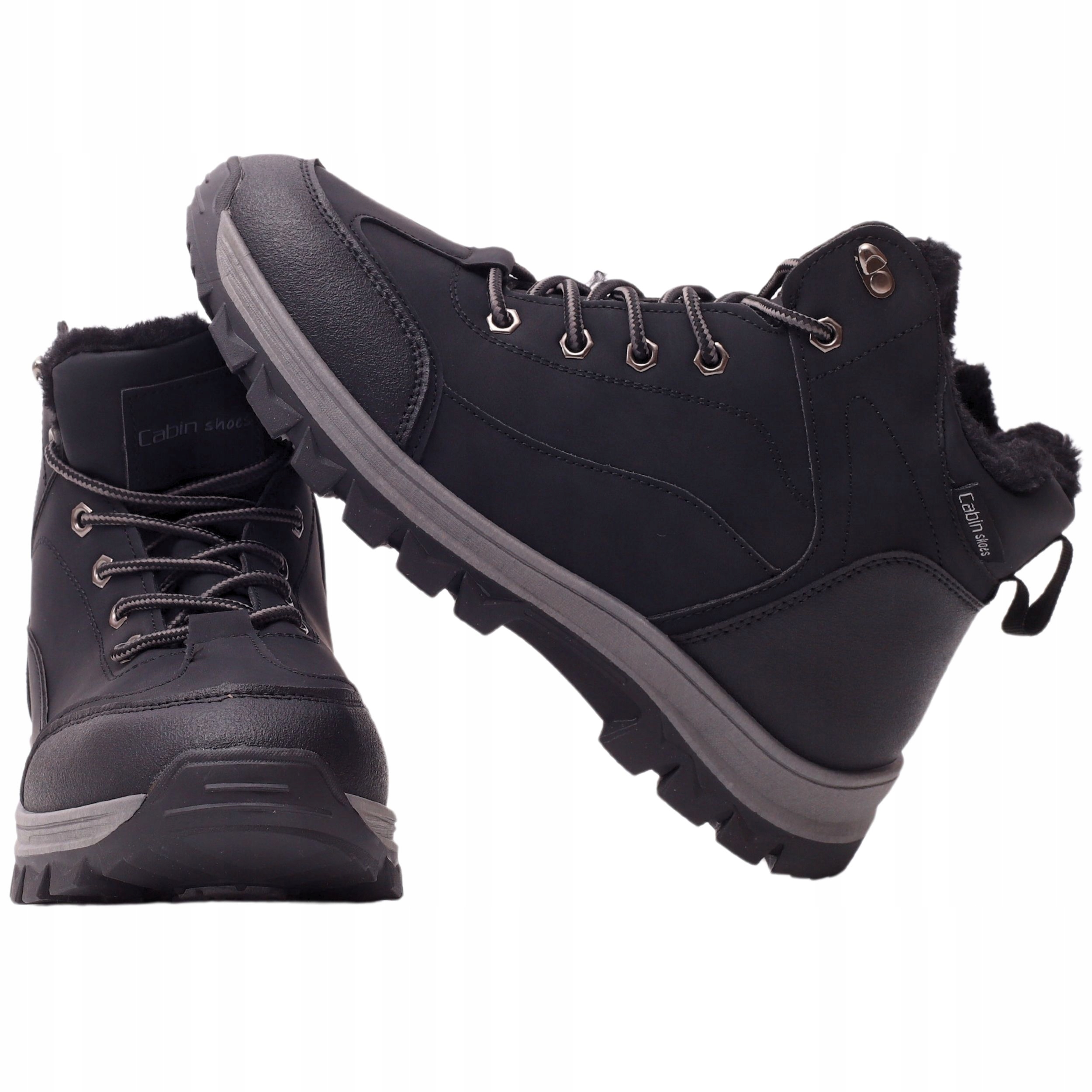 Мужская утепленная зимняя обувь, черная, изготовлена из высококачественных материалов. Шнуровка регулирует ширину обуви. Высокий верх обеспечивает устойчивость. Подошва проклеенная, что обеспечивает долгий срок службы. Он полностью утеплен мягким мехом, идеально подходящим для холодных дней. Противоскользящая подошва с протектором улучшает амортизацию стопы.