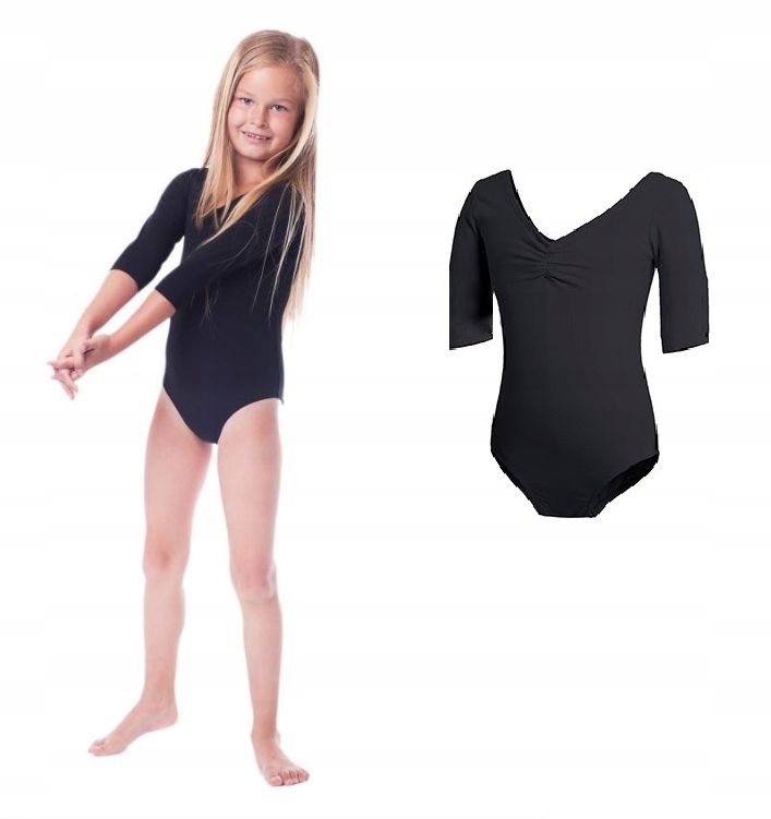 Чорне гімнастичне боді з рукавом 3/4 Ballet 134/140