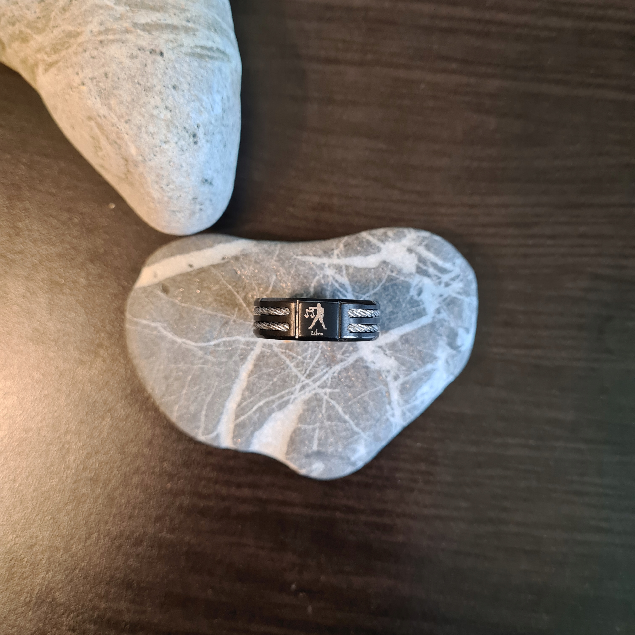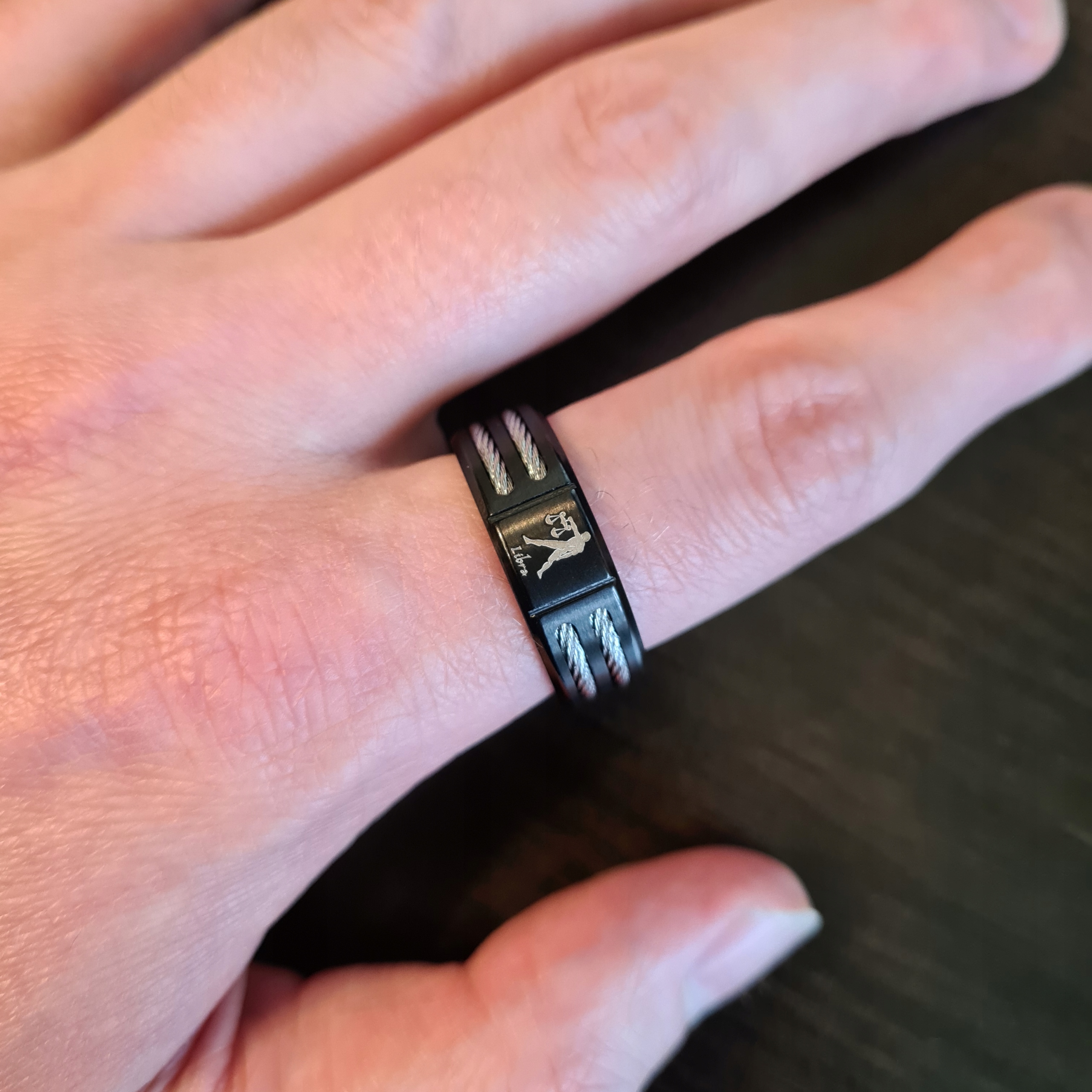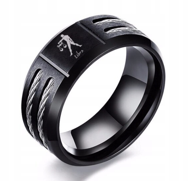 Красивое черное обручальное кольцо по знаку Зодиака Весы