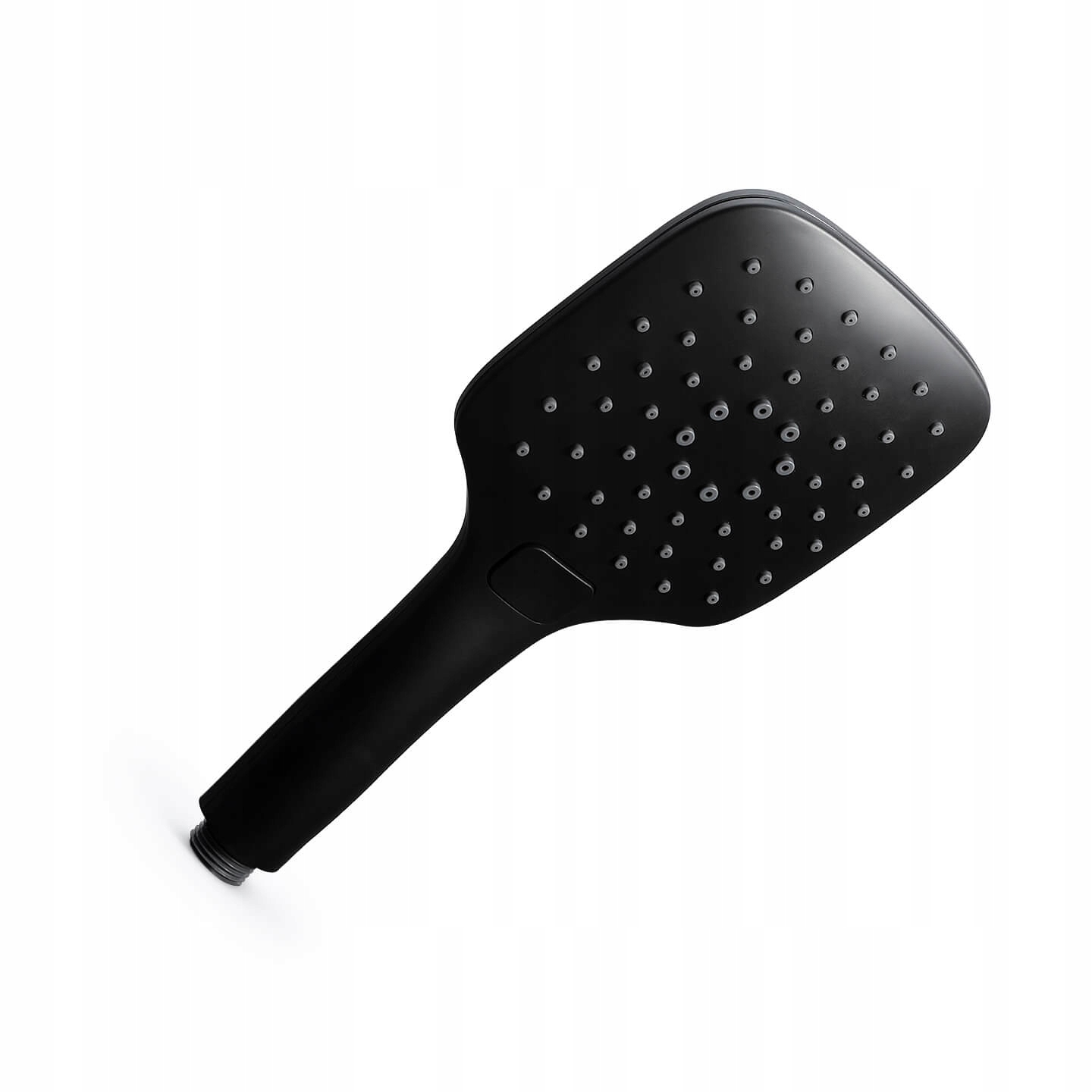 Душевая лейка из прочного материала черного матового цвета. В телефоне имеется три функции душа, что обеспечивает не только удобство использования, но и экономию воды. Изменение функций осуществляется с помощью кнопки, расположенной вверху ручки. Силиконовые насадки против накипи позволяют быстро удалять отложения, что дополнительно влияет на срок службы телефона и удобство использования.
